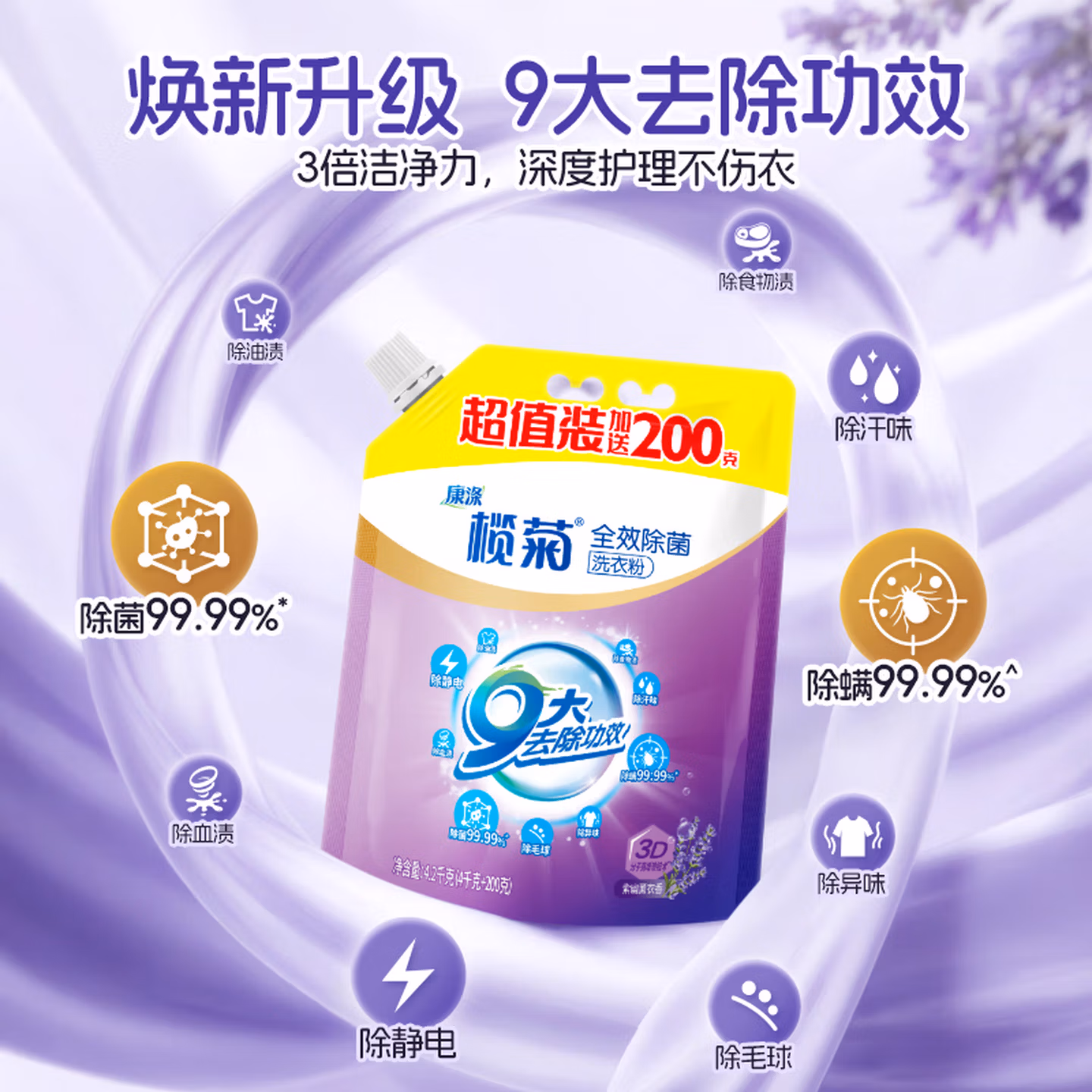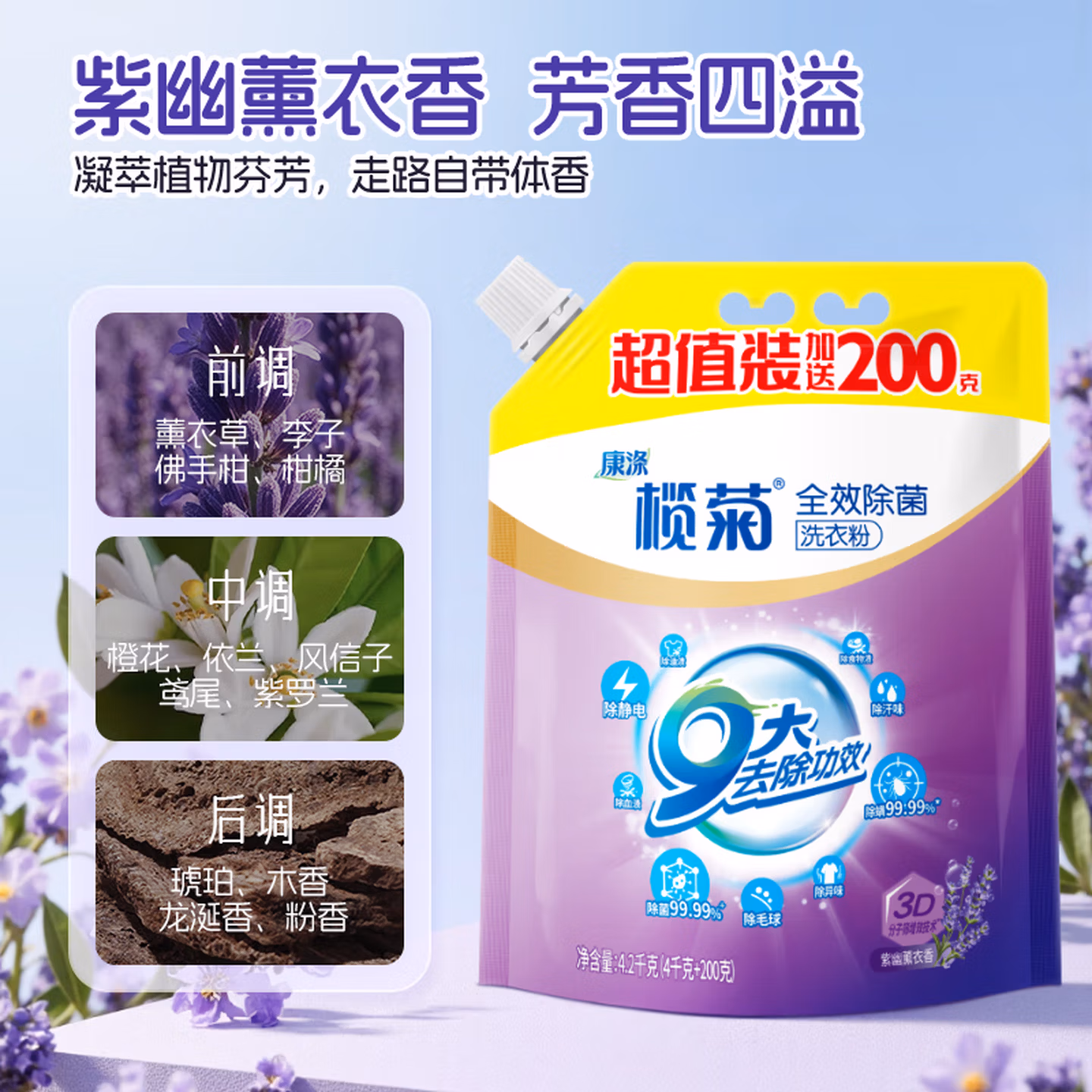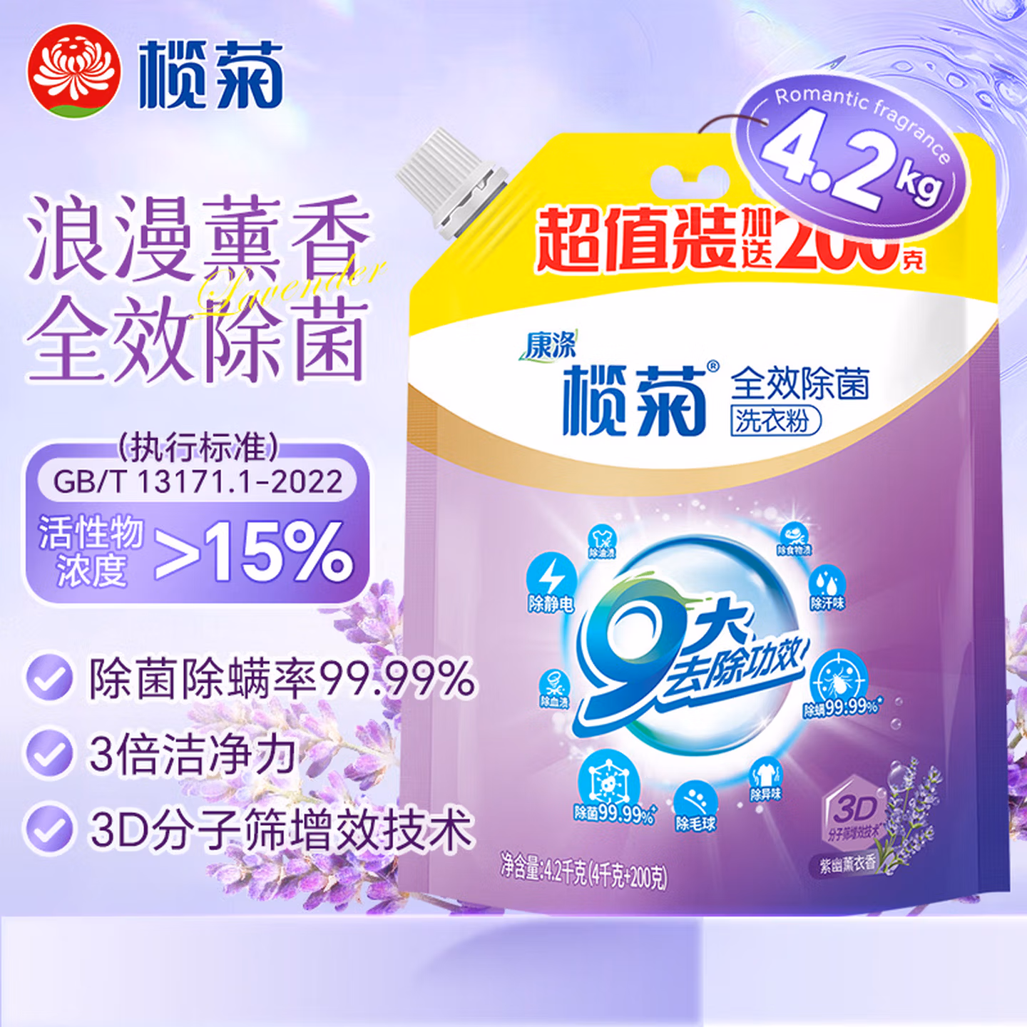 榄菊全效除菌洗衣粉4.2kg强效去渍 持久留香 除菌除螨99.99%