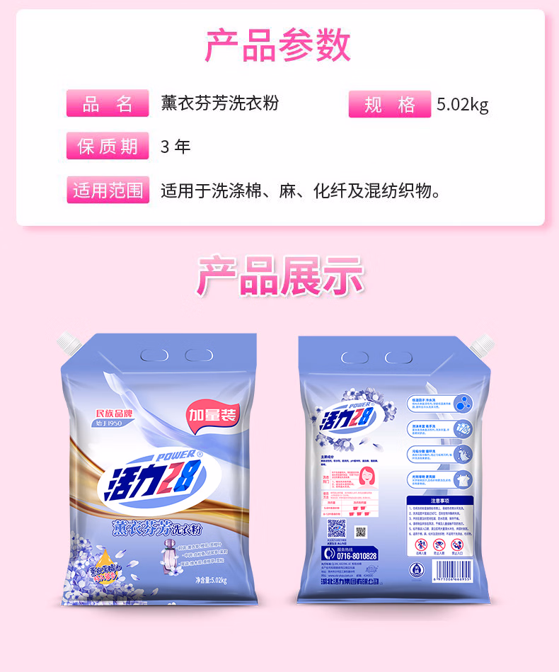 活力28薰衣芬芳洗衣粉5.02kg持久留香去污渍无磷冷水低温速洗升级款 【1物1码】5.02kg*1袋