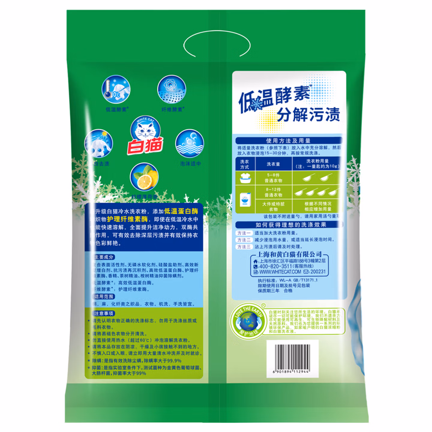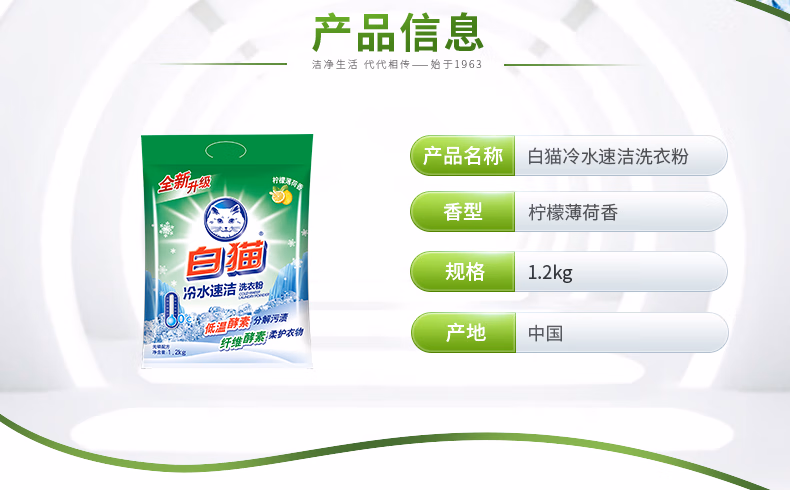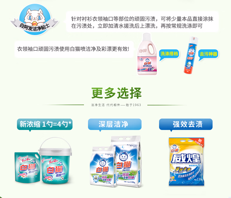 > 白猫冷水速洁洗衣粉2.4斤*8袋(整袋装)双酵合一去渍护衣 低泡易漂