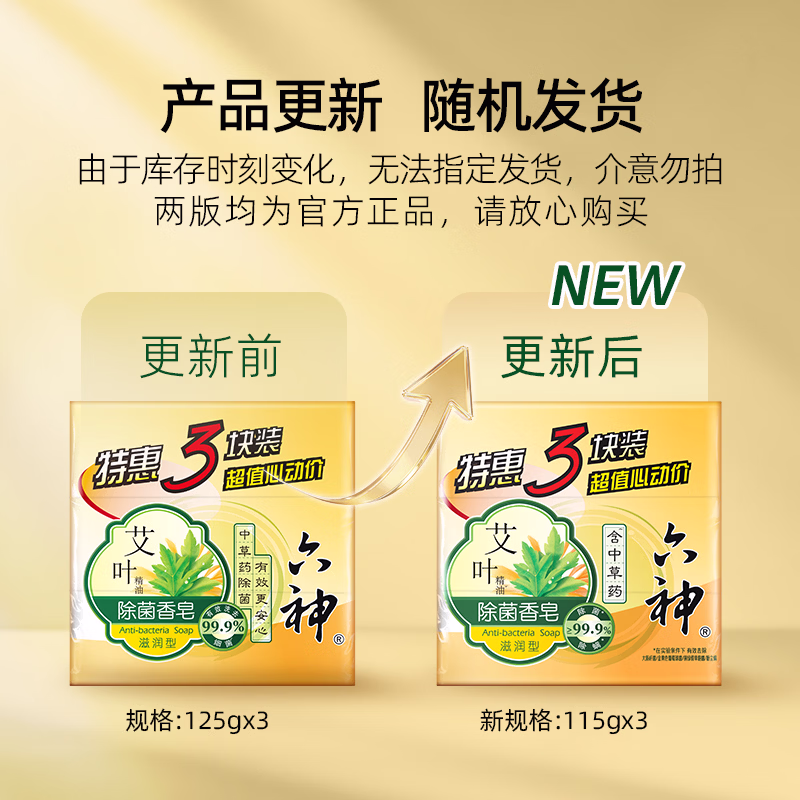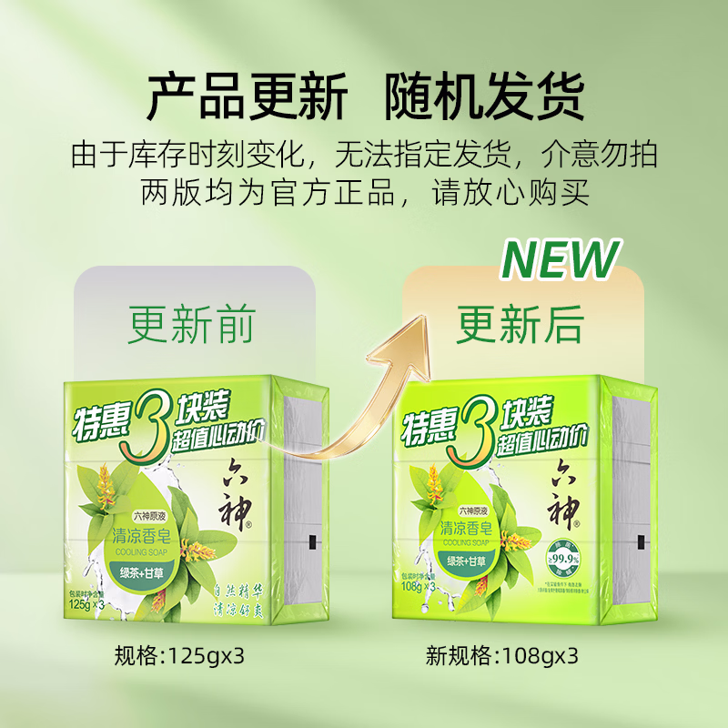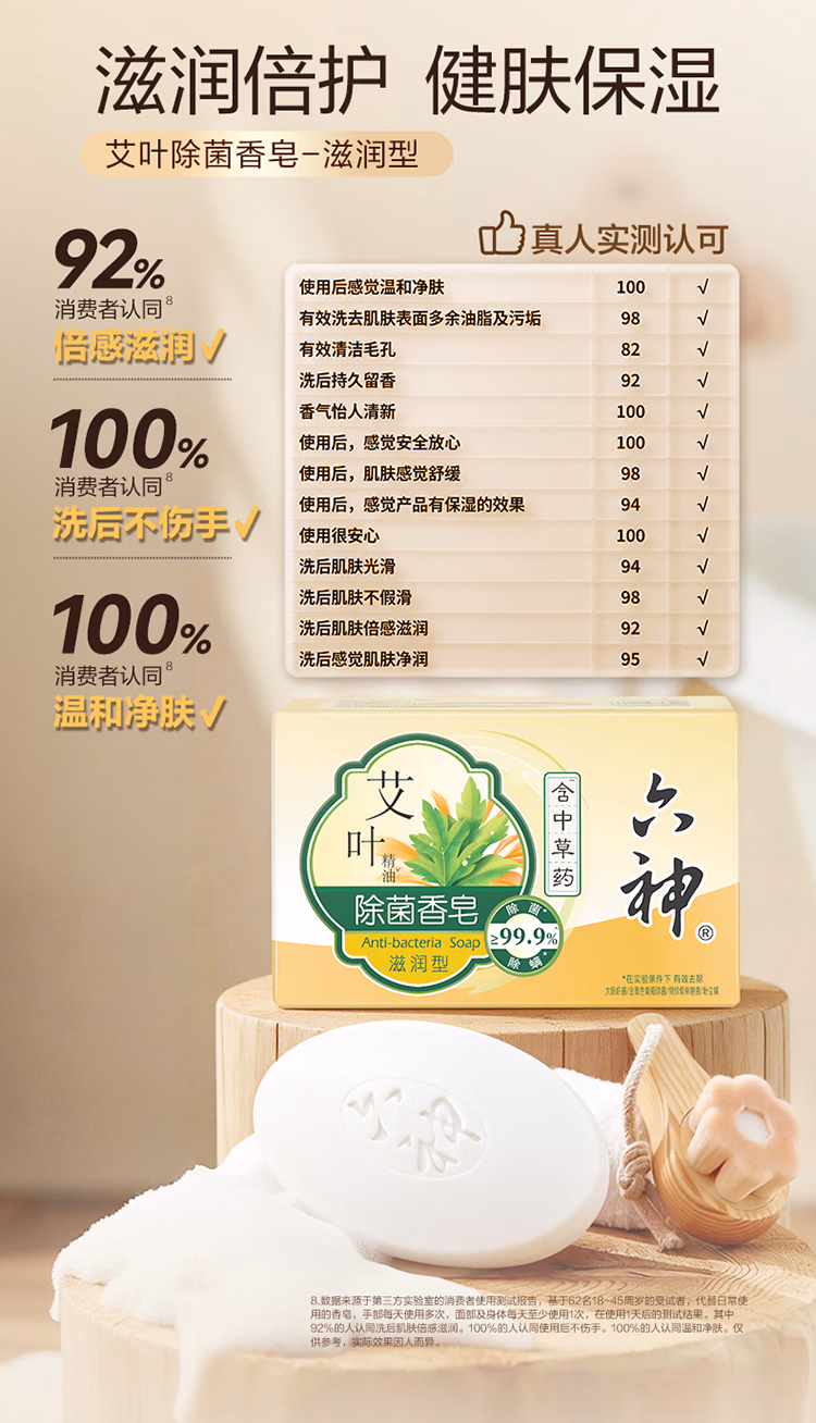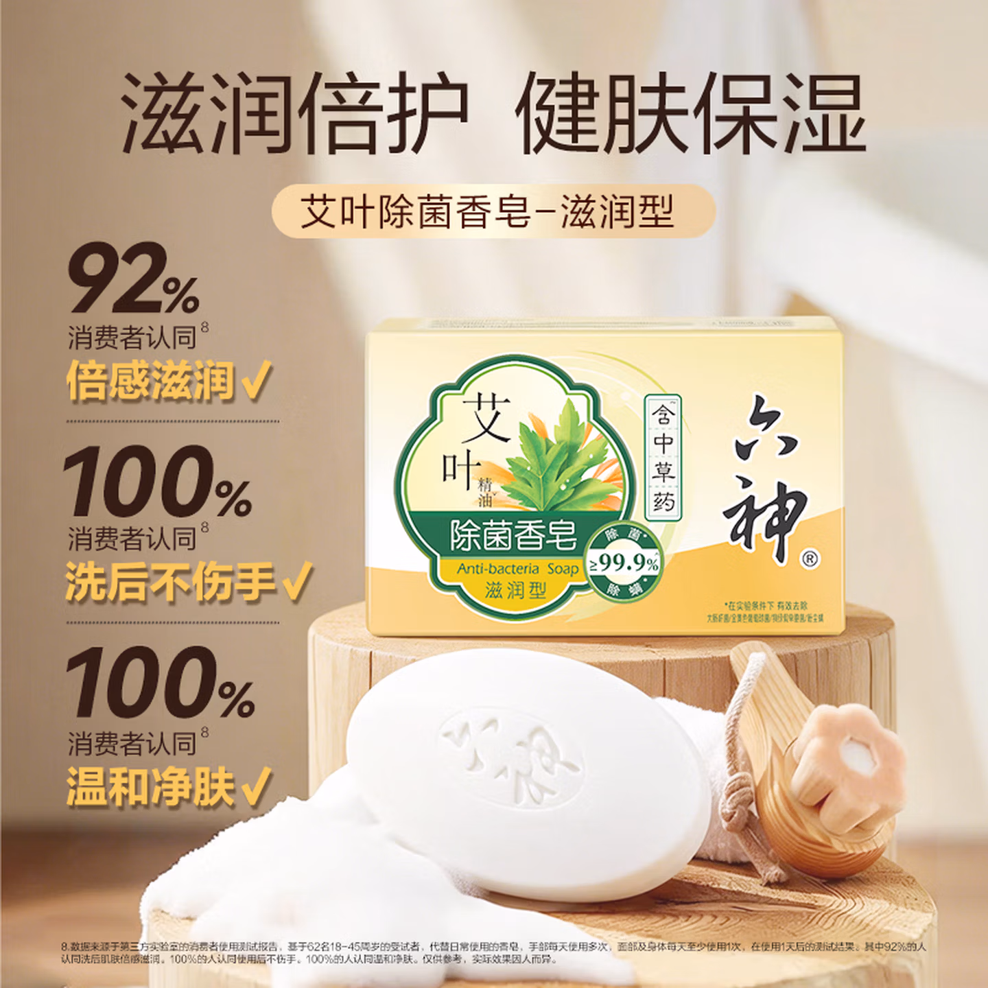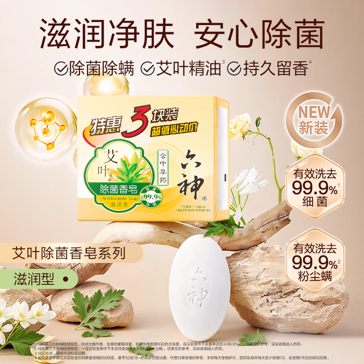 > 六神【超值9块装】艾叶115g*3+百合108g*3+绿茶108g*3 香皂 肥皂