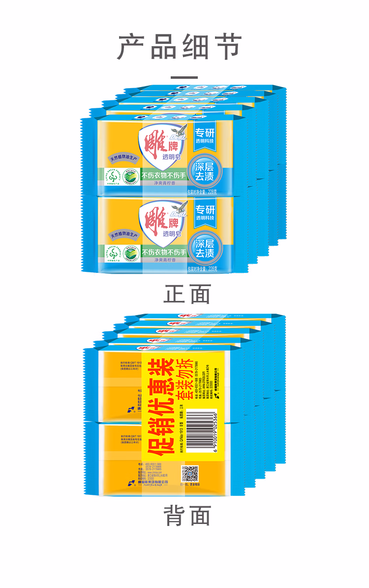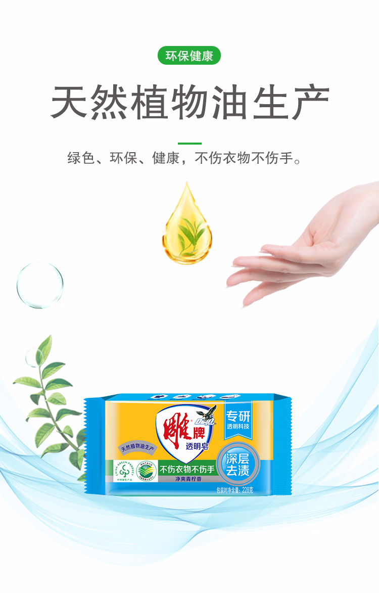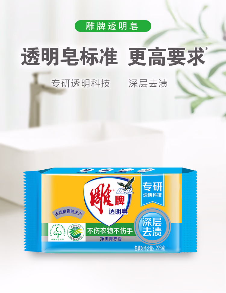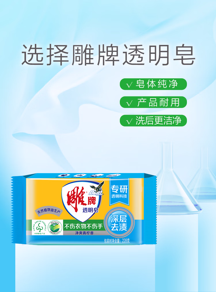 > 雕牌 透明皂 净爽青柠香 228g*10块*2组 深层去渍 轻松去污