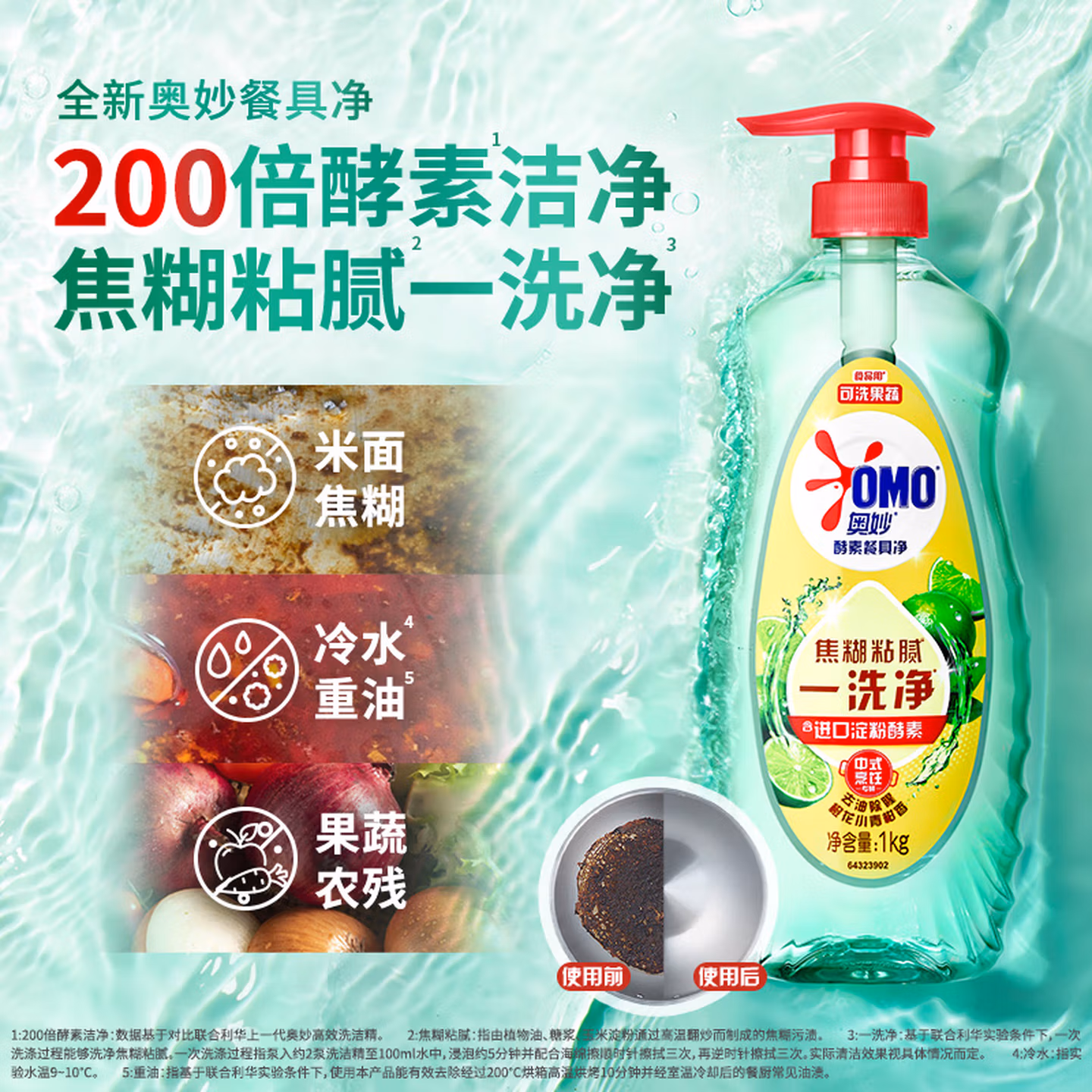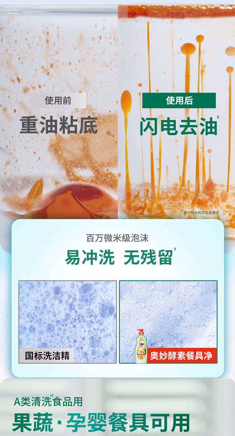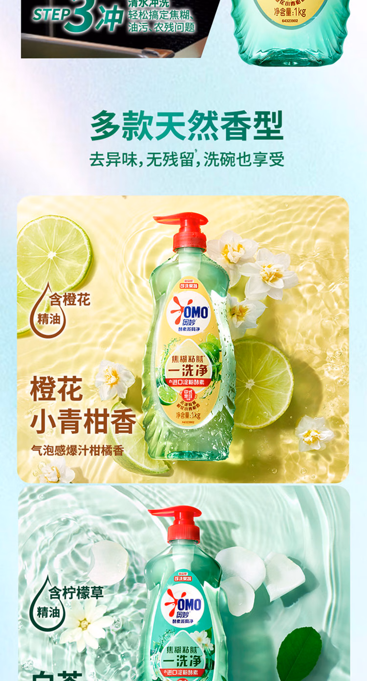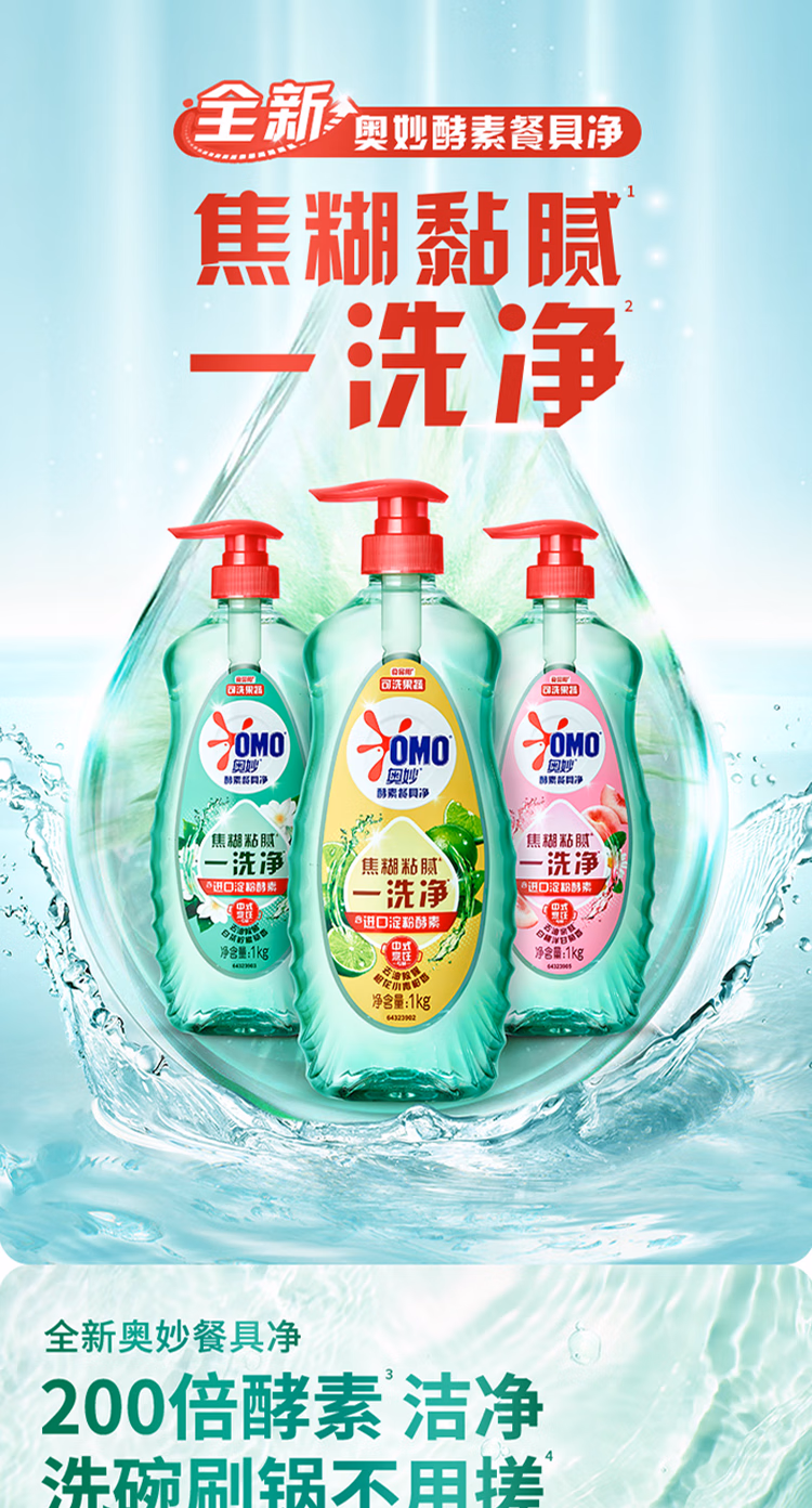 奥妙大桶酵素餐具净洗洁精 橙花小青柑 1kg*2 4斤装 1泵1补去锅具焦糊