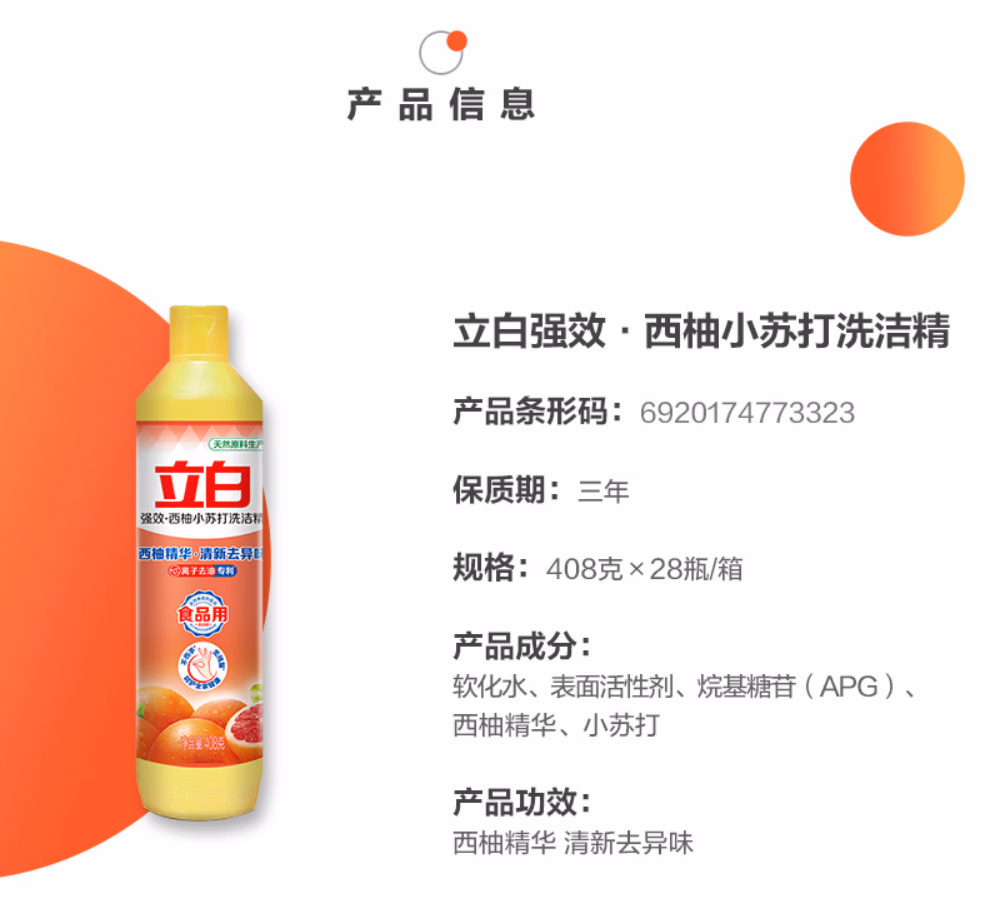 立白西柚洗洁精食品用洗涤剂级家用实惠装不伤手清新去油腻 够实惠套餐1瓶】