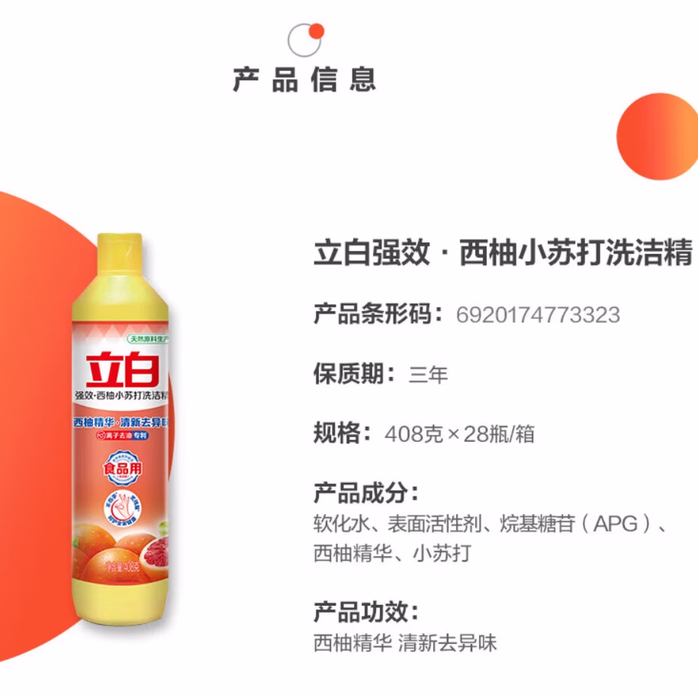 > 立白西柚洗洁精食品用洗涤剂级家用实惠装不伤手清新去油腻 够实惠套餐1瓶】