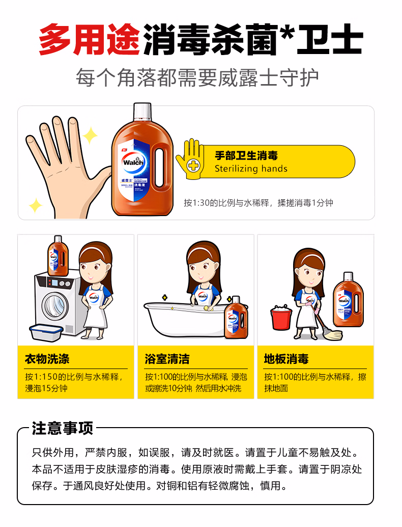 > 威露士消毒液衣物家居多用途高浓缩消毒清洁非84次氯酸消毒水 【体验装】60mlx3