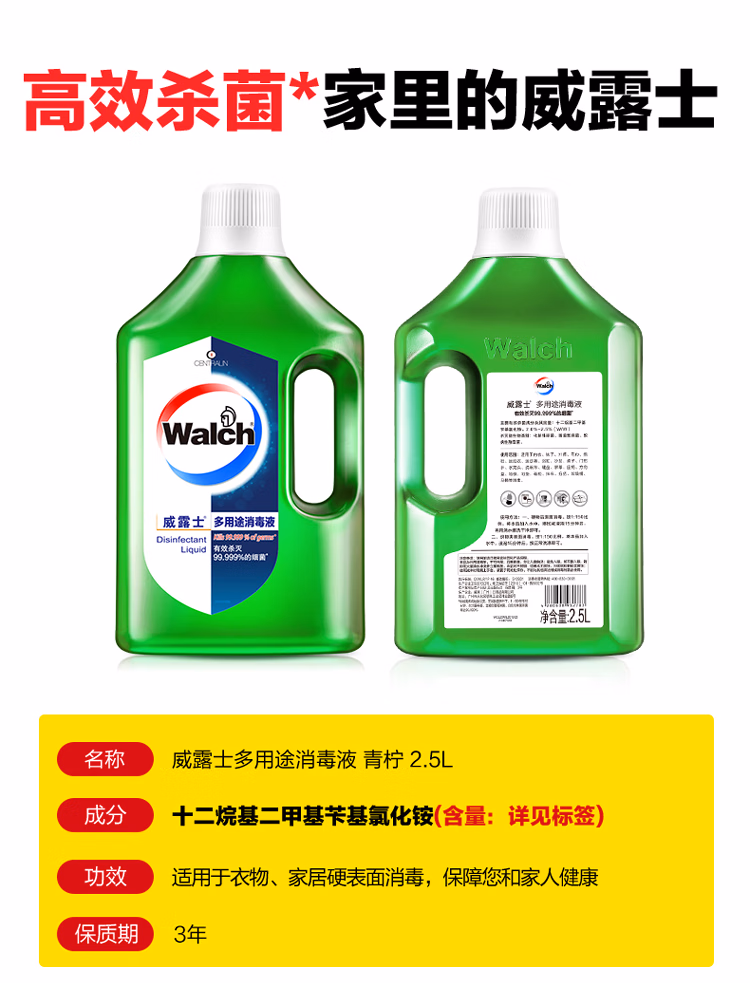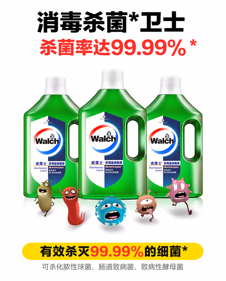 > 威露士多用途消毒液(1L*3+60ml*2)衣物消毒水居家地板杀菌除螨 非84酒精