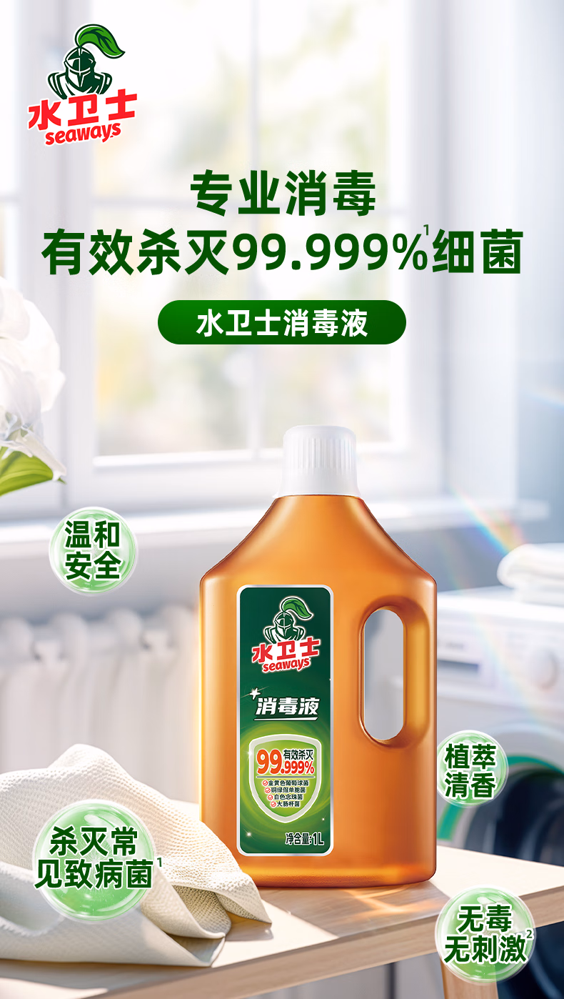 水卫士多用途消毒液 衣物消毒液1L*4瓶 室内母婴宠玩具衣物地板杀菌剂