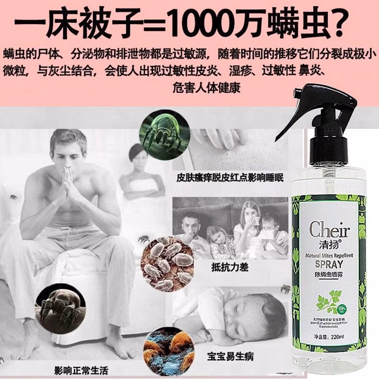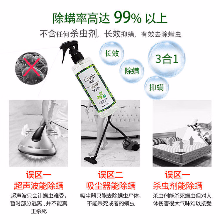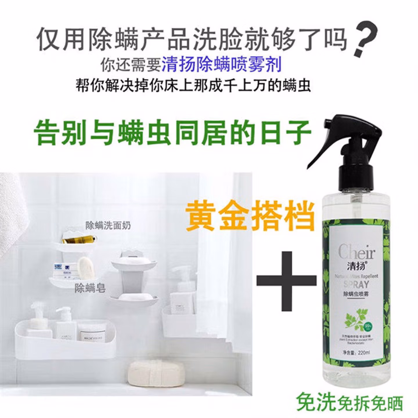 清扬除螨喷雾被子除菌消毒床上床单免洗免晒无味螨虫学生宿舍 透明 2瓶喷雾+1盒除螨包10包装