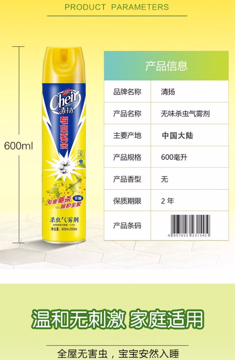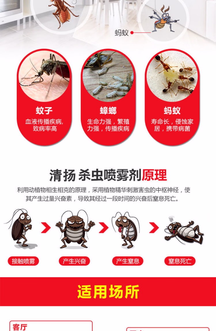 清扬杀虫剂灭杀蚊虫除蟑螂蚂蚁驱跳蚤喷雾家用酒店卧室家庭 组合装 60 体验装600ml1瓶无味全效型杀虫剂