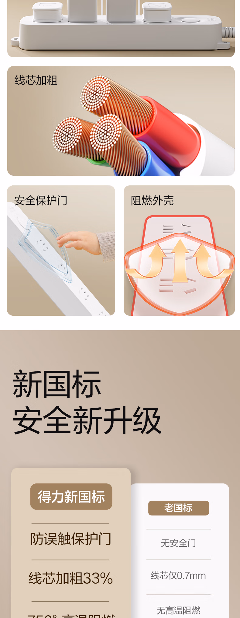 > 得力新国标安全插座 插线板/插排/排插/插板/接线板/拖线板延长线 总控开关 4位1.8米 33919(1.8)