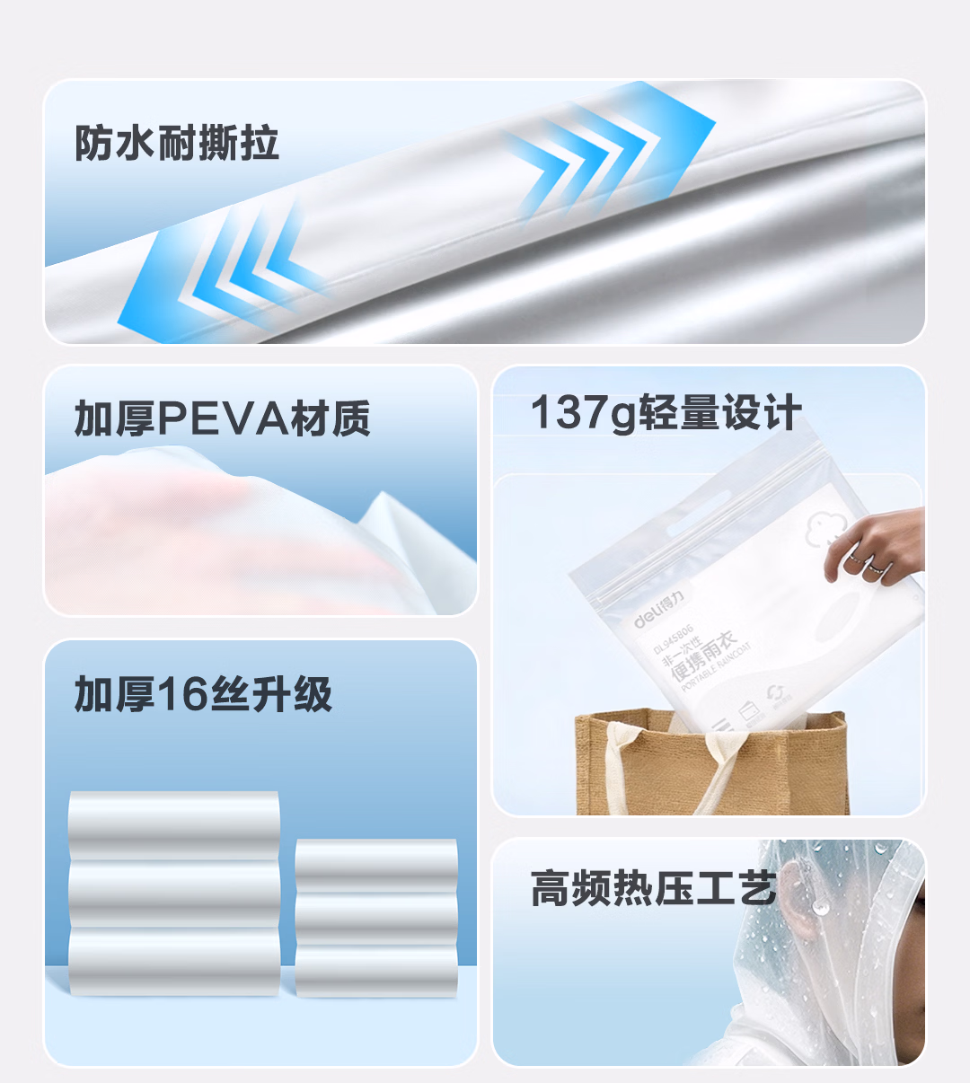 > 得力(deli)一次性雨衣雨披加厚长款成人暴雨一体式骑行便携户外男女通用 黄