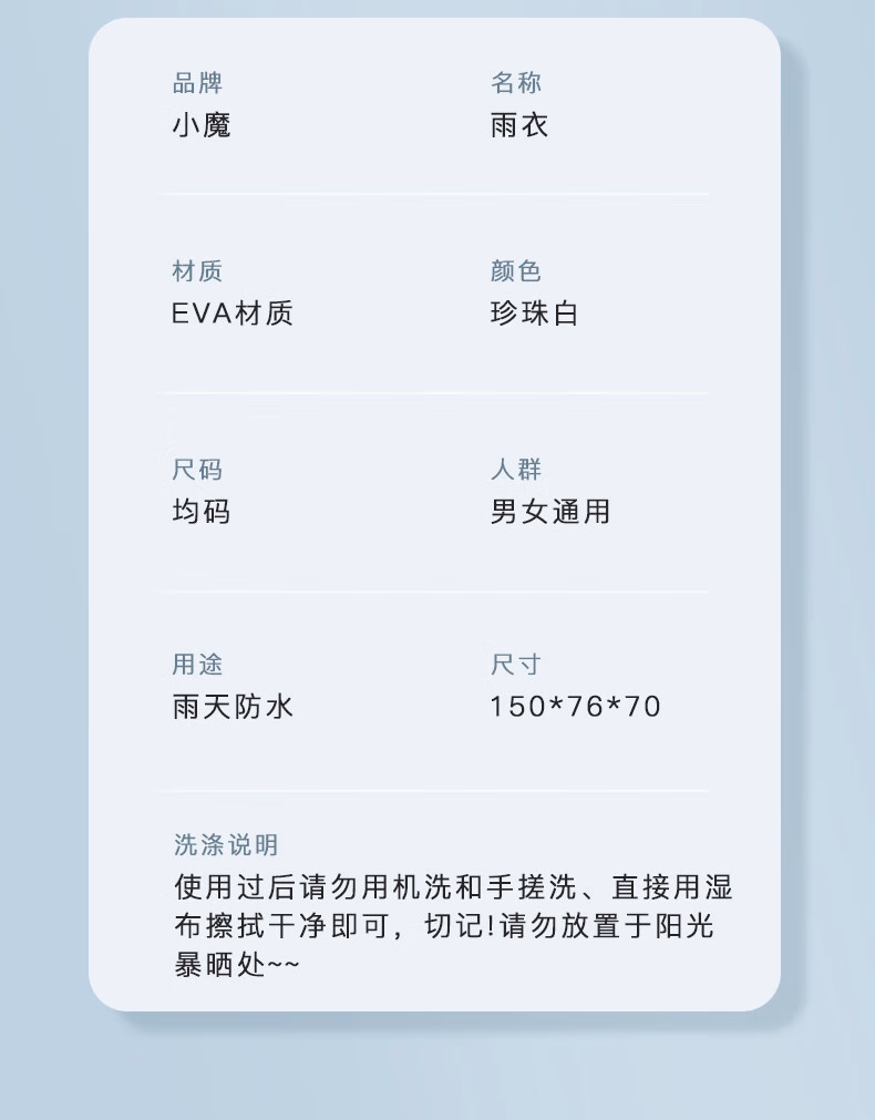 > 小魔100g小魔一次性雨衣雨披成人半透明便携雨衣户外骑行登山徒步雨衣可定制(成人便携EVA磨砂雨衣)
