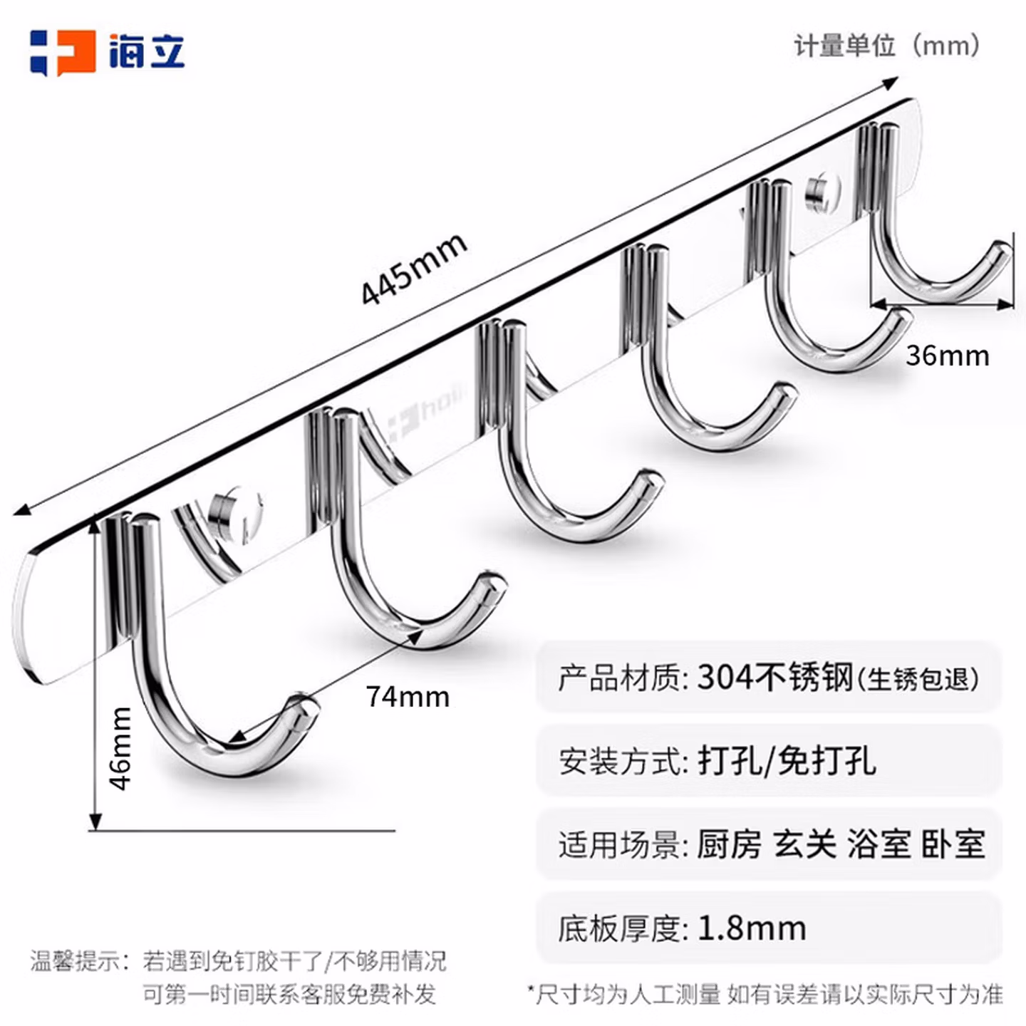 304不锈钢5钩(配免钉胶)
