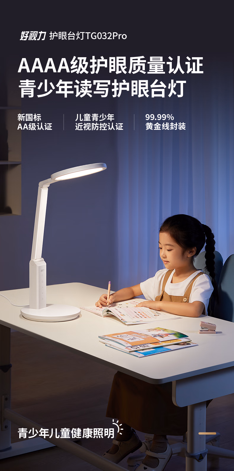 > 好视力护眼学习台灯国AA级学生儿童阅读床头工作书桌读写led灯 TG032-TN【插电款】6档调光3档调色