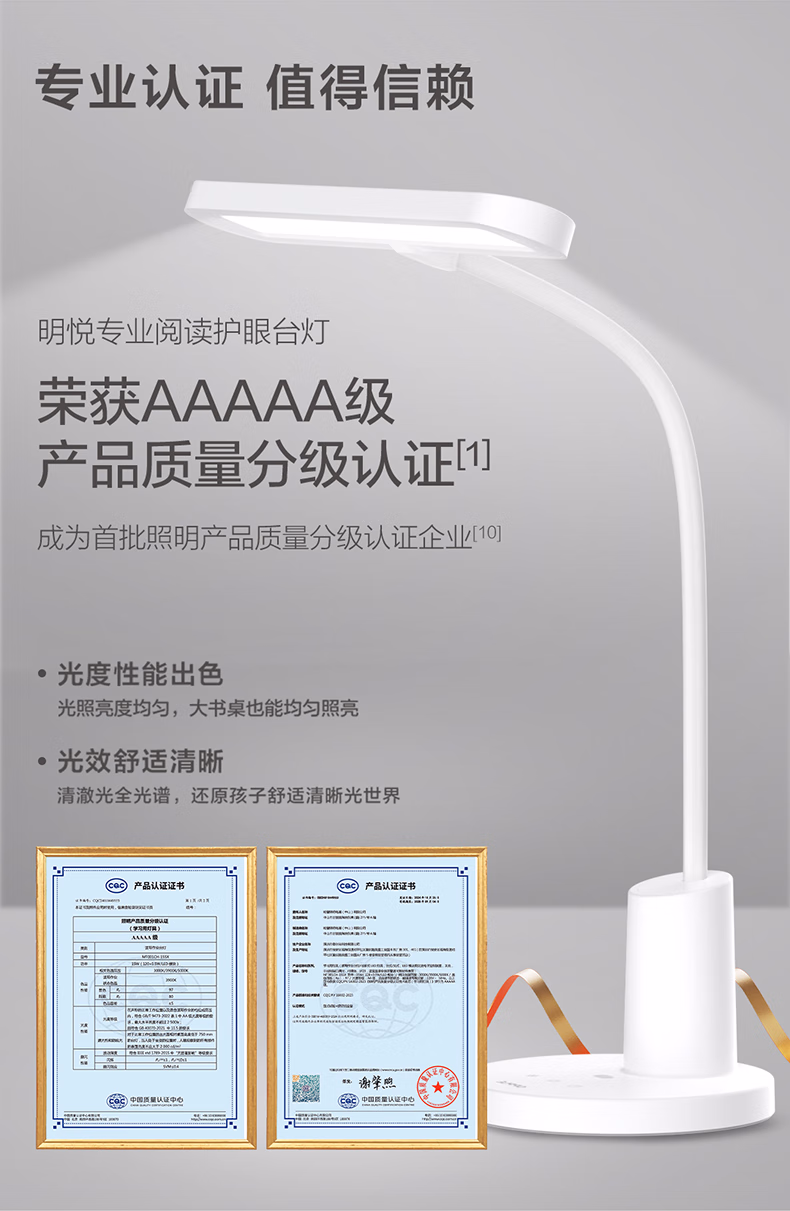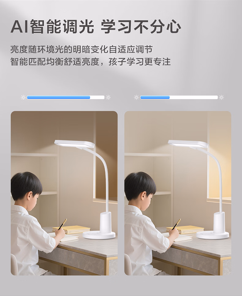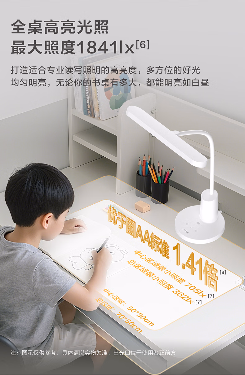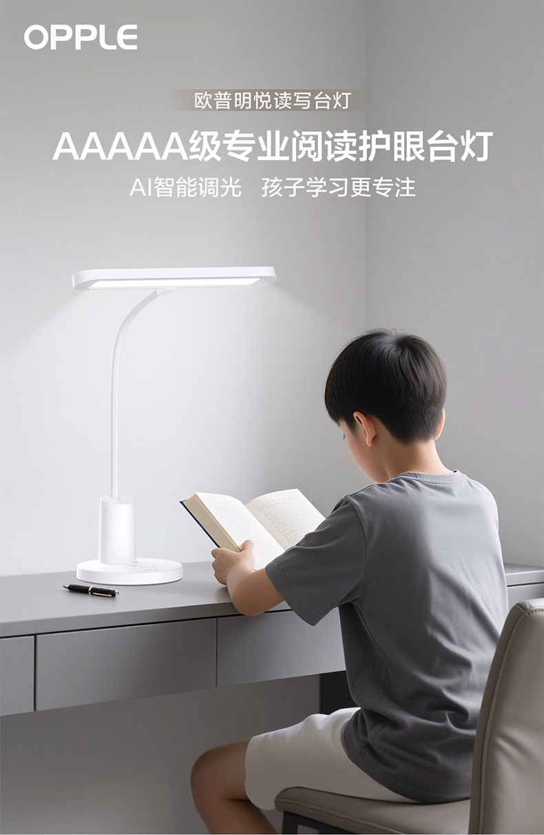 > 欧普照明(OPPLE)全光谱无蓝光学习护眼台灯学生儿童书桌卧室T型光感调节 尚明2T