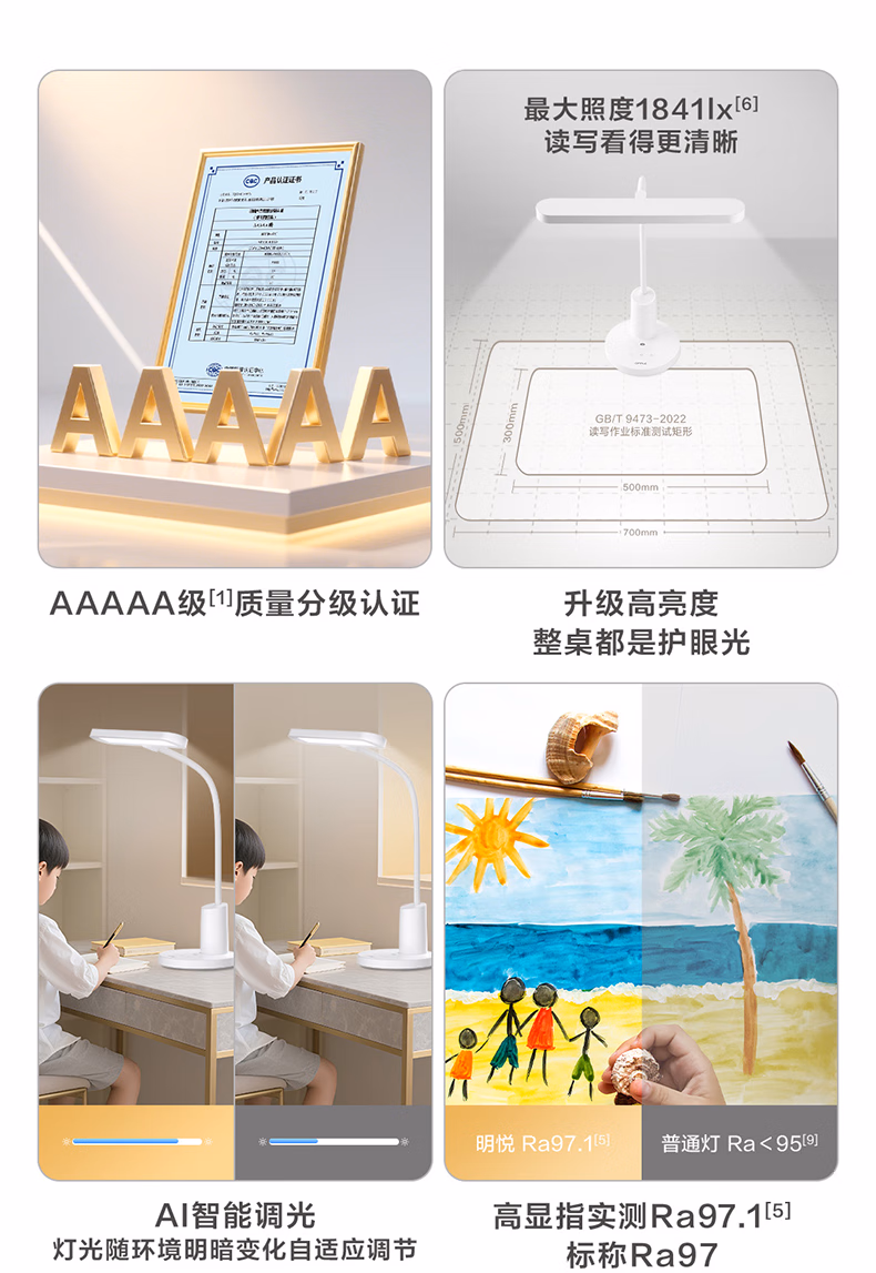 欧普照明(OPPLE)全光谱无蓝光学习护眼台灯学生儿童书桌卧室T型光感调节 尚明2T