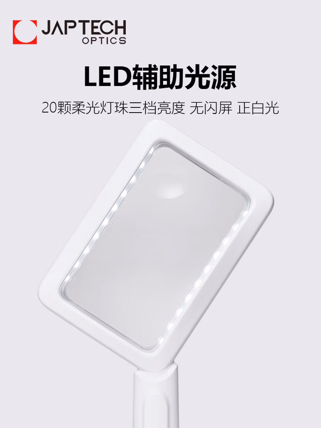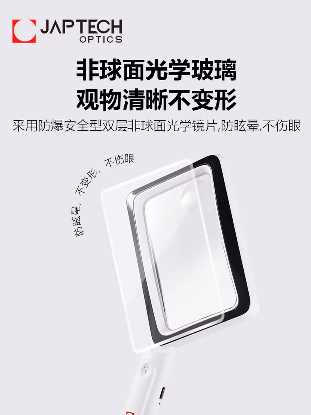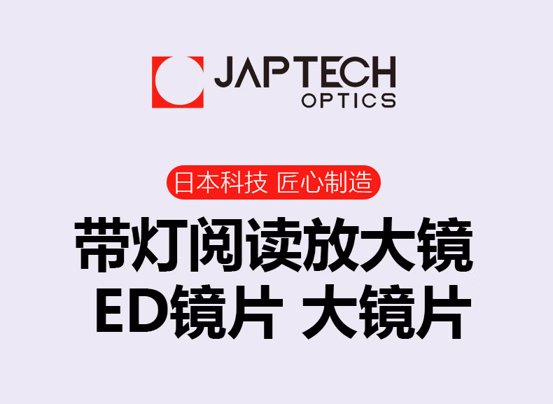 > JAPTECH日本科技非球面ED镜片放大镜高清带LED灯老人手持阅读维修
