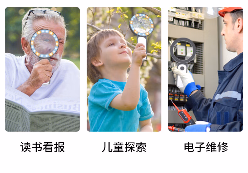 > MIXOUT米欧特手持放大镜高倍高清阅读鉴定放大镜带LED灯三档调光
