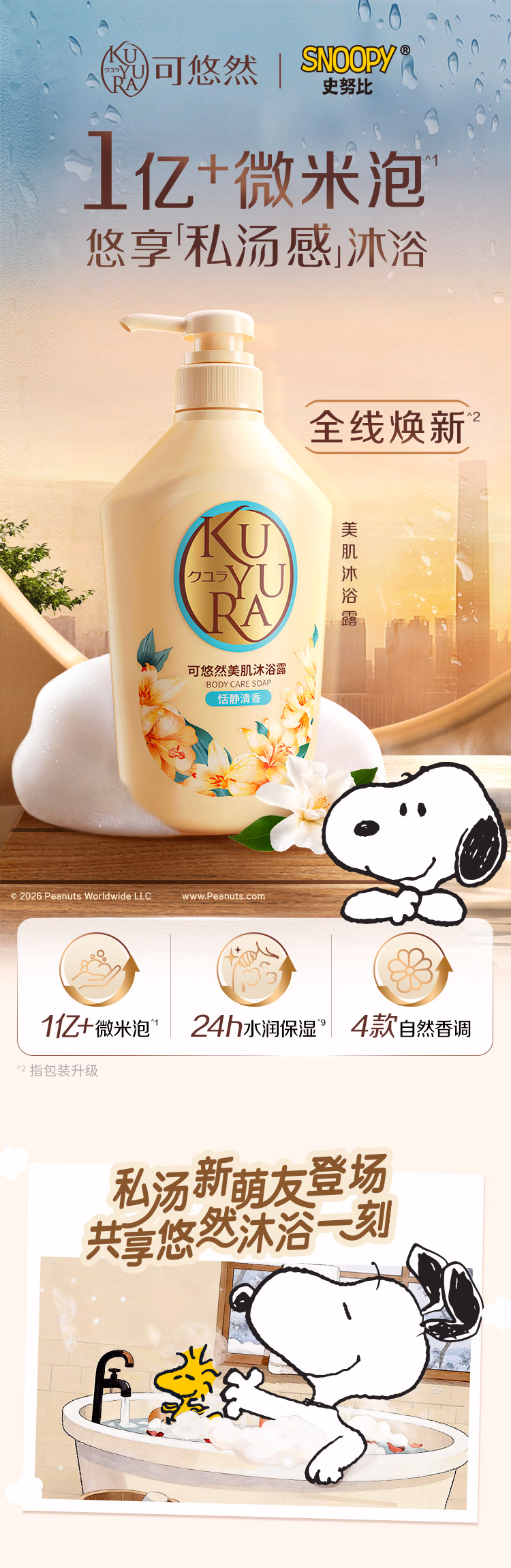 > 可悠然沐浴露大黄瓶550ml 美肌香氛持久留香滋润保湿恬静清香男女士专用