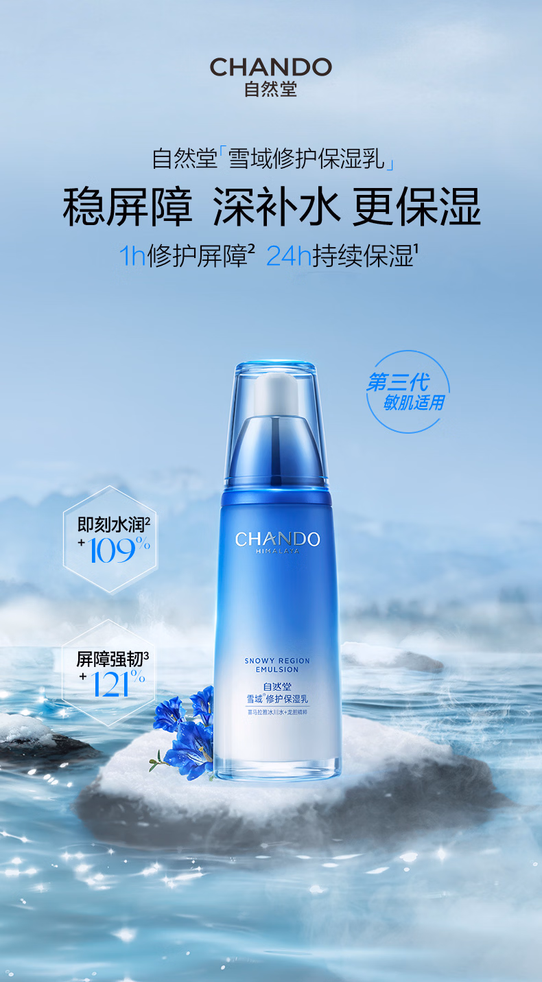 > 自然堂【常华森同款】雪域修护保湿乳120ml水润透亮