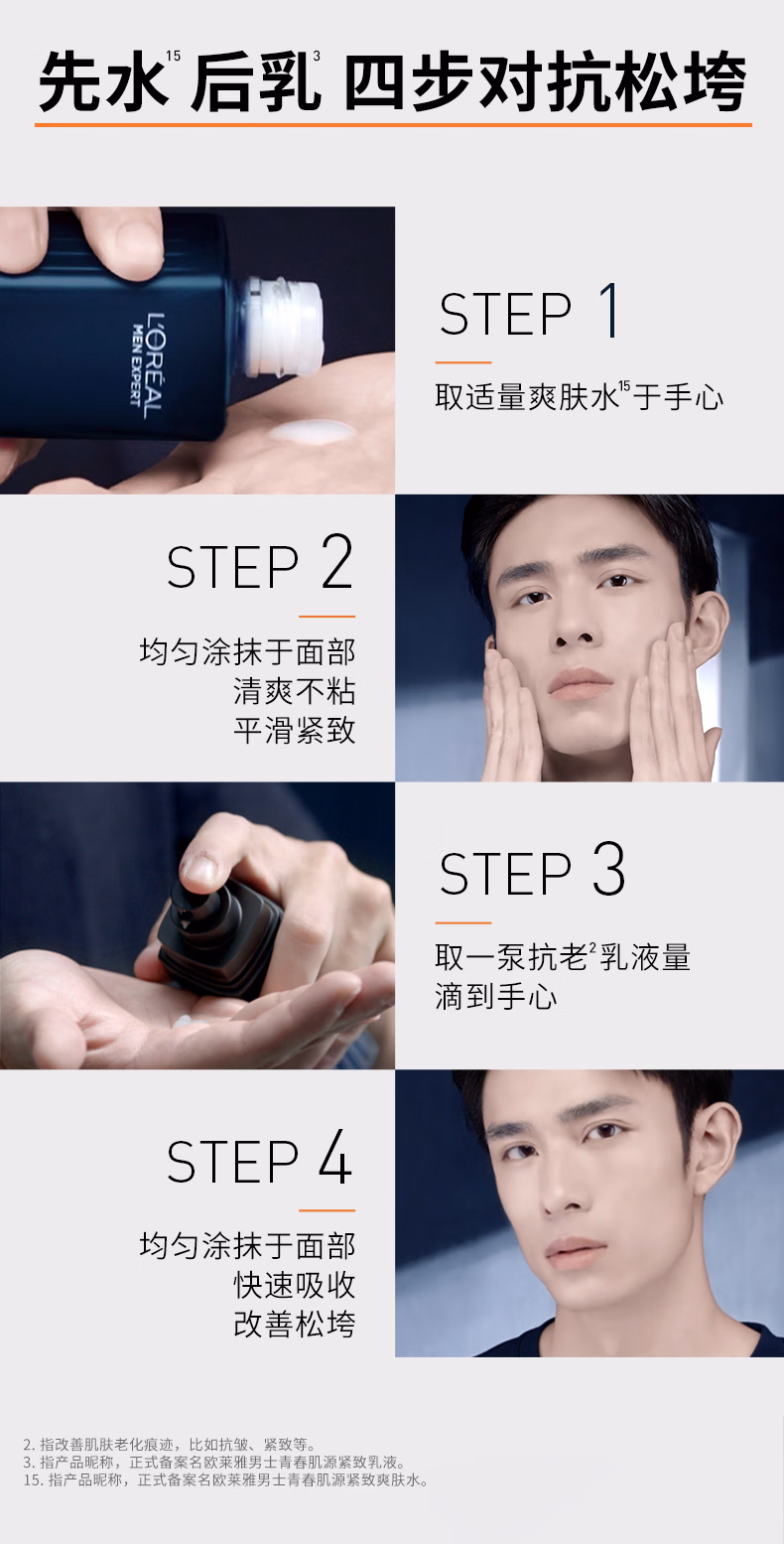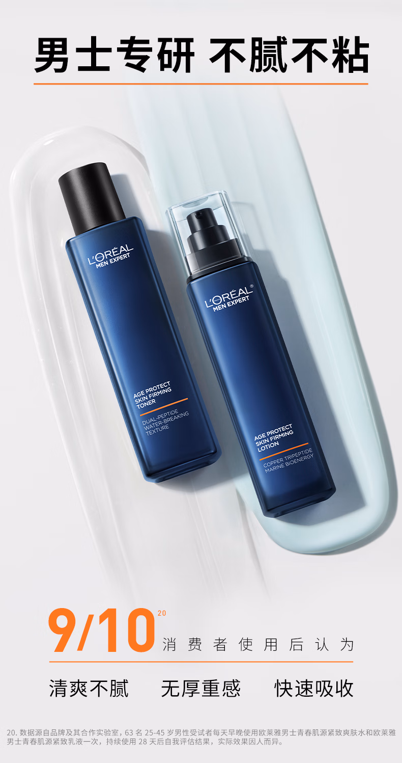 欧莱雅男士专用青春肌源紧致乳液抗皱保湿补水男士护肤品
