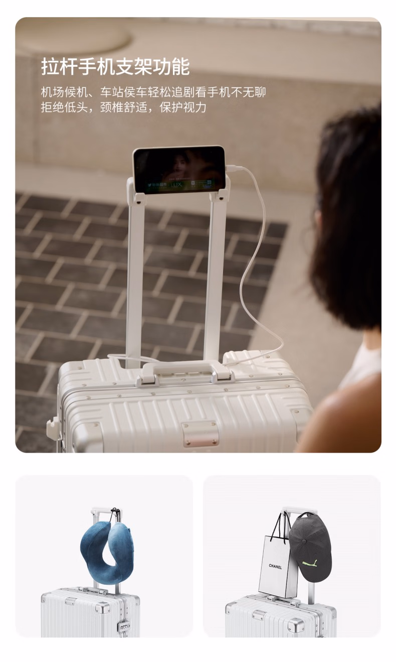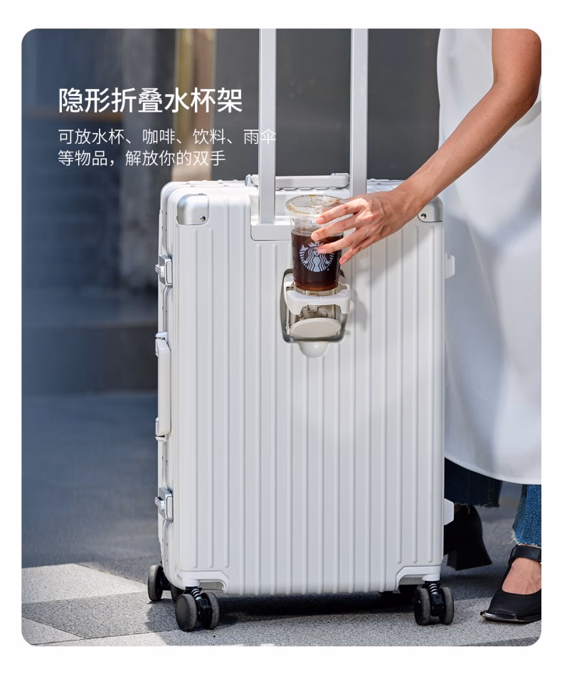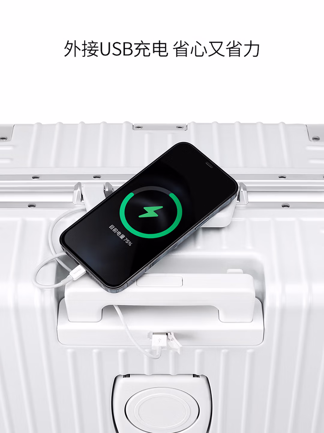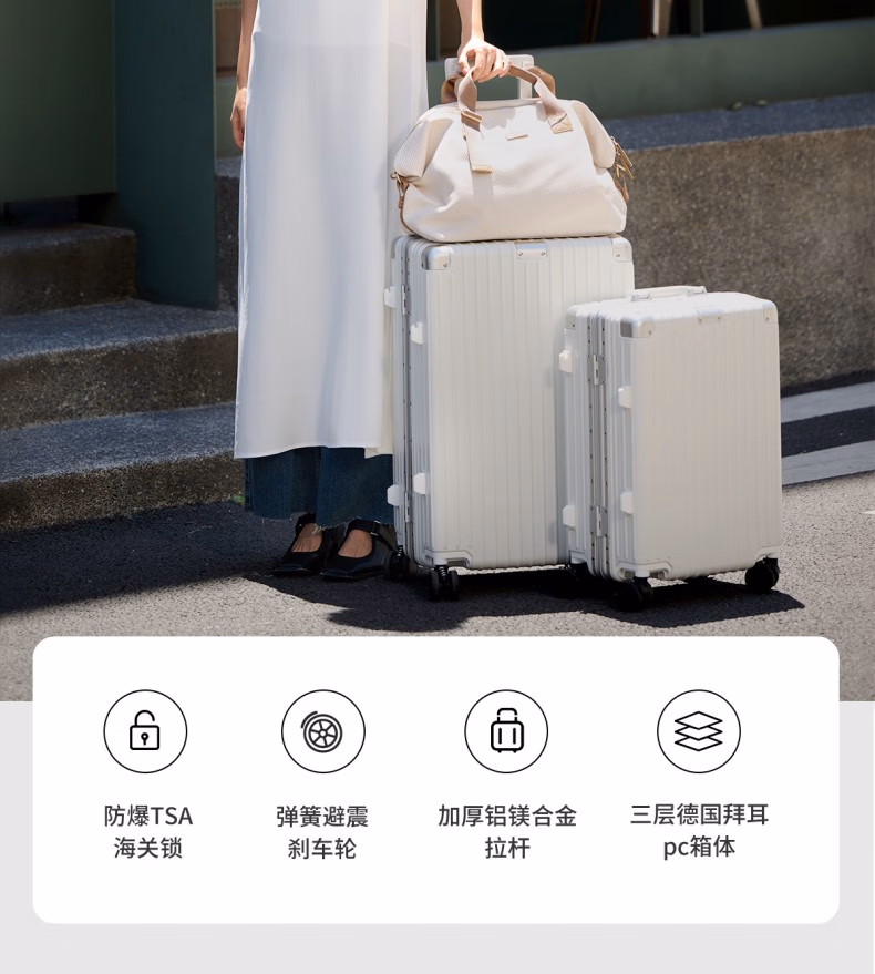 > 梦旅者多功能行李箱铝框拉杆箱皮箱万向轮旅行箱男女 28英寸哑光白色
