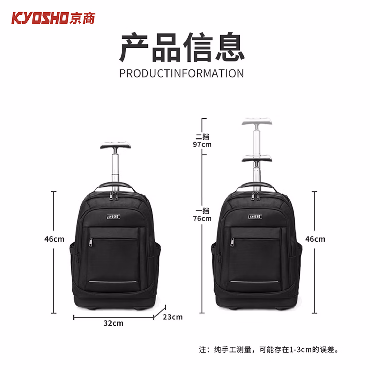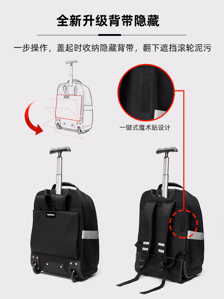 > 京商(Kyosho)日本拉杆包男双肩背包多功能行李箱袋书包超大容量带轮旅行登机包 黑色 18英寸可登机