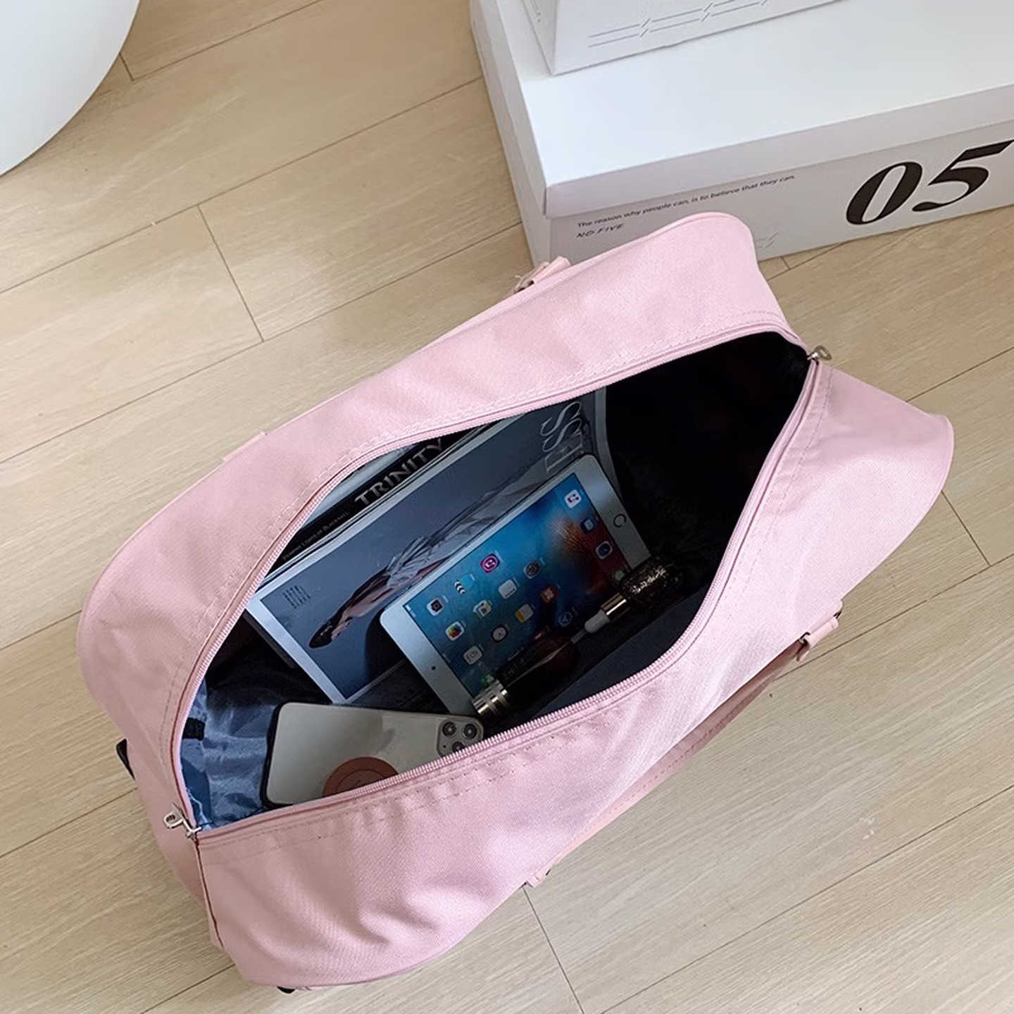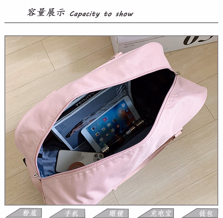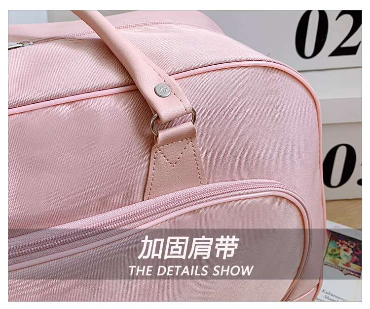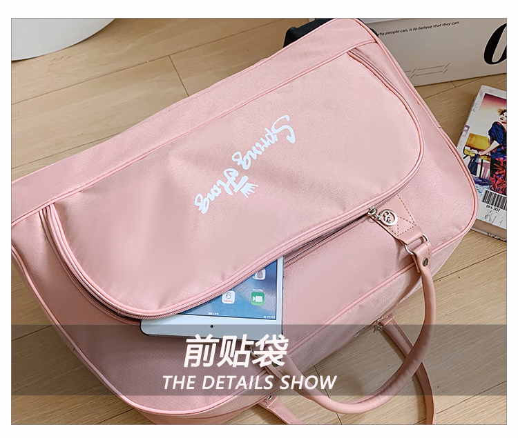 > 大容量旅行包女出差手提行李袋拉杆包可折叠带滑轮拖拉包男登机包 粉色英文 大号