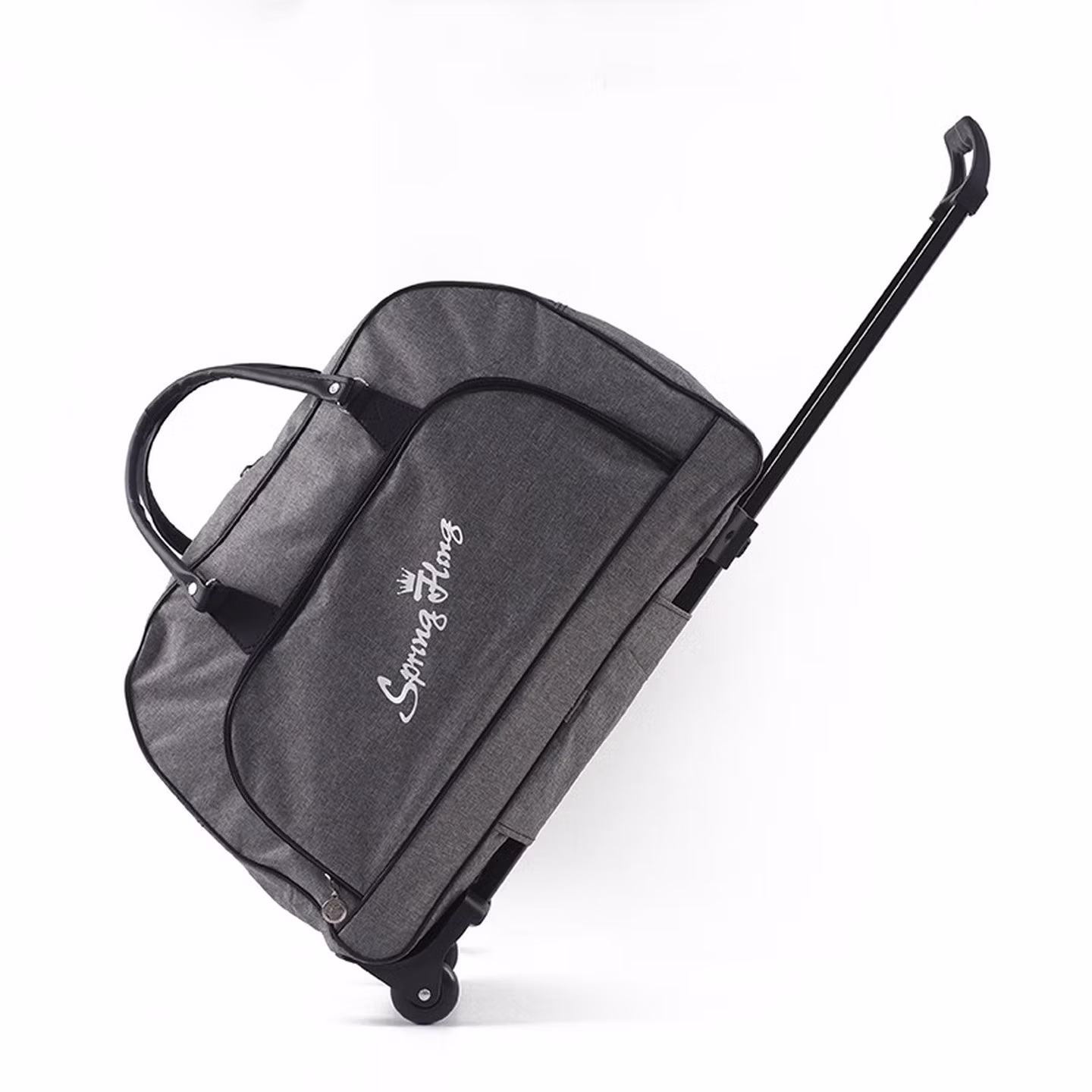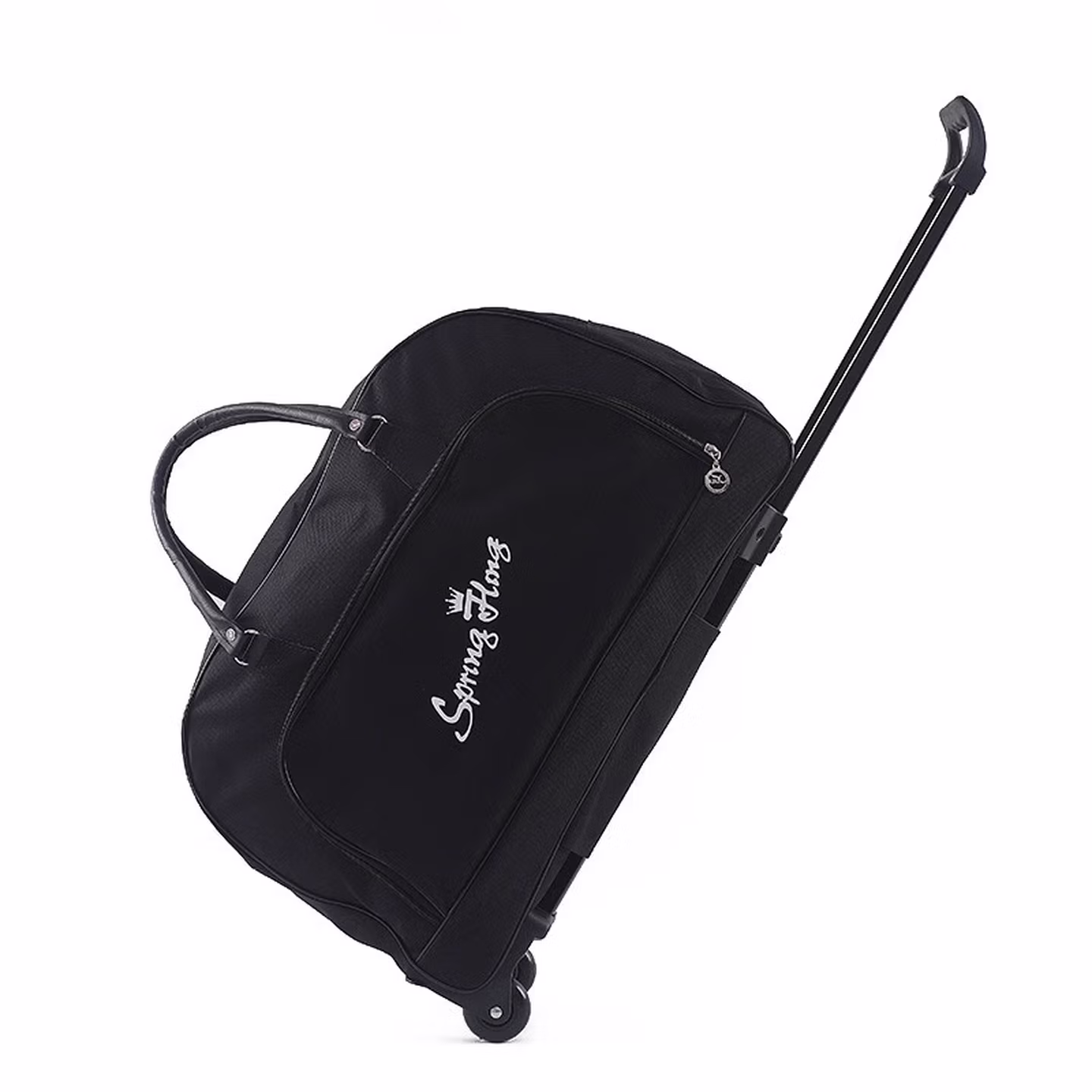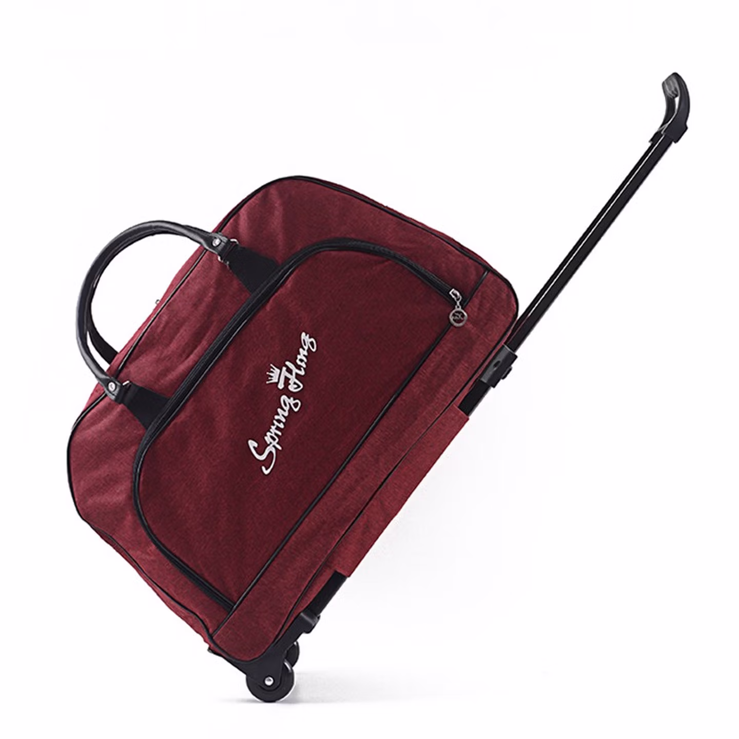 大容量旅行包女出差手提行李袋拉杆包可折叠带滑轮拖拉包男登机包 粉色英文 大号