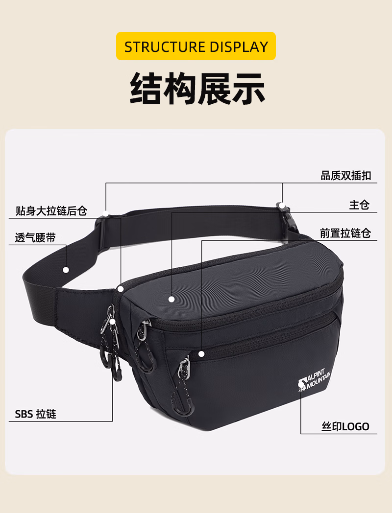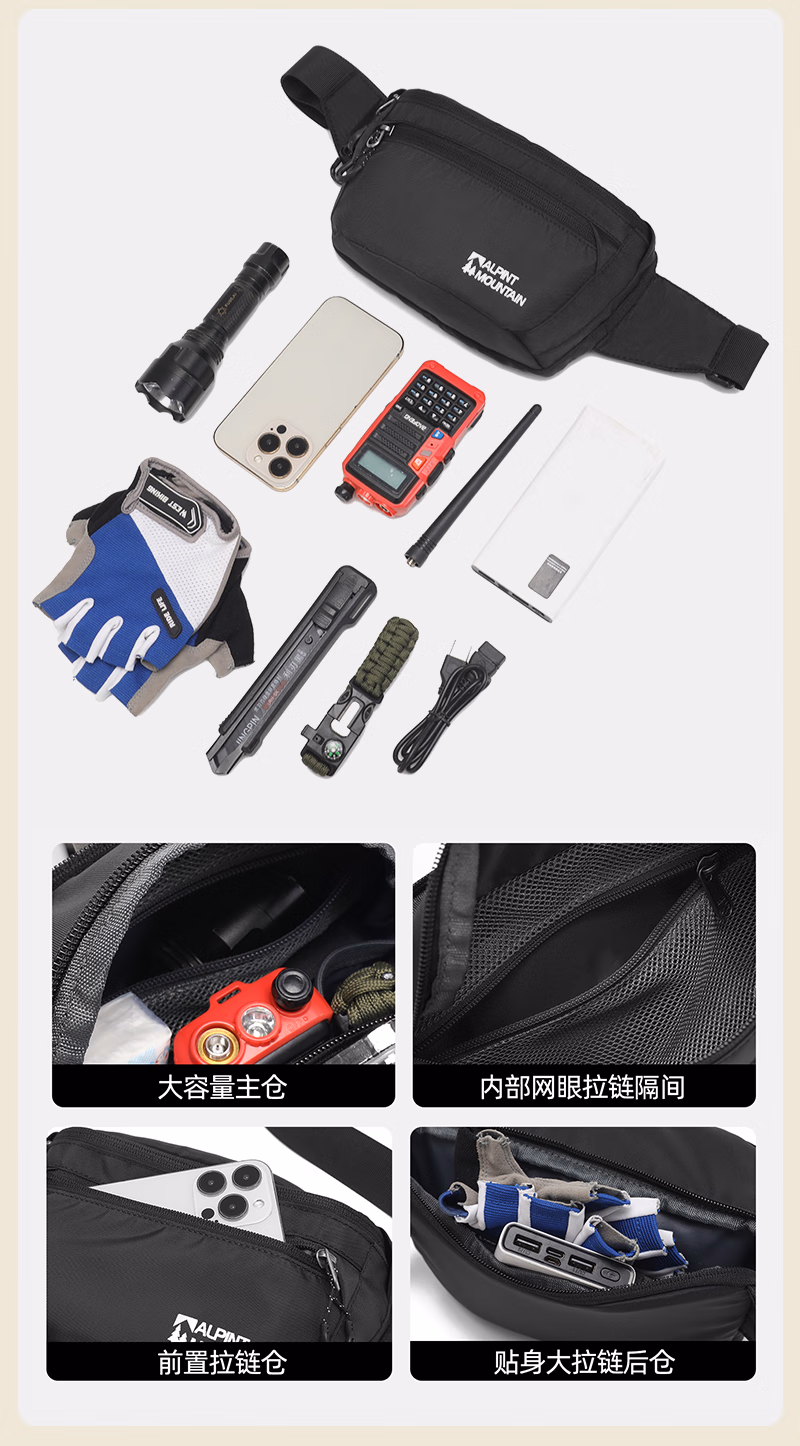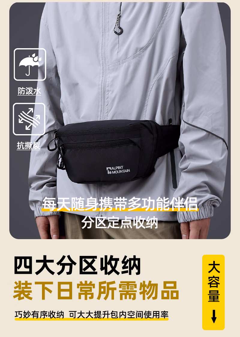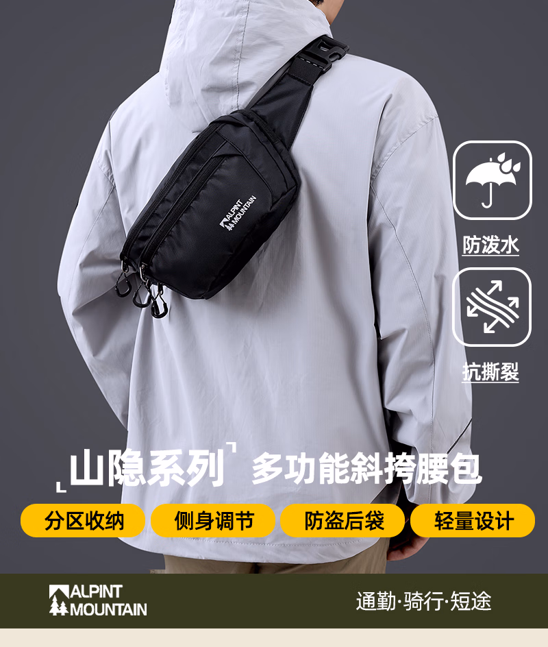 > ALPINT MOUNTAIN埃尔蒙特腰包胸包休闲户外斜跨包多功能大容量轻便运动骑行机能包