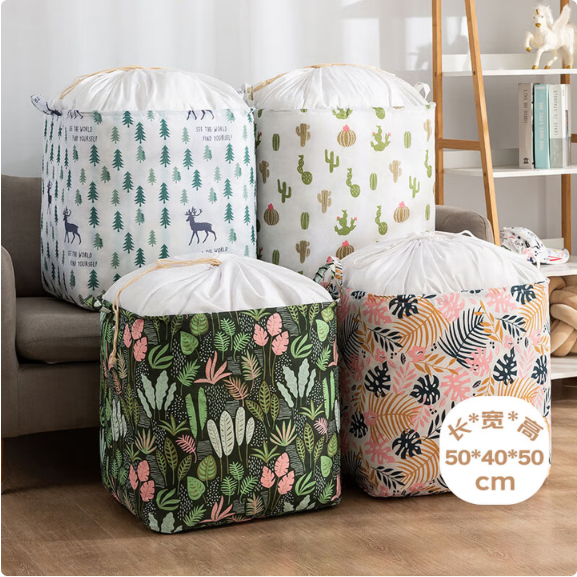 侑家良品Y-0853侑家良品 【超大号2个装】收纳袋 衣服被子整理袋搬家打包袋棉被衣物束口袋 仙草加芭蕉 100L(2个装【100L】绿意仙草 粉色芭蕉)