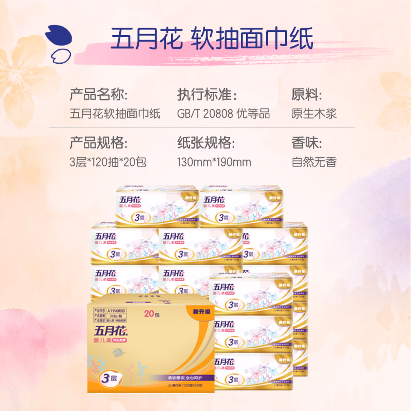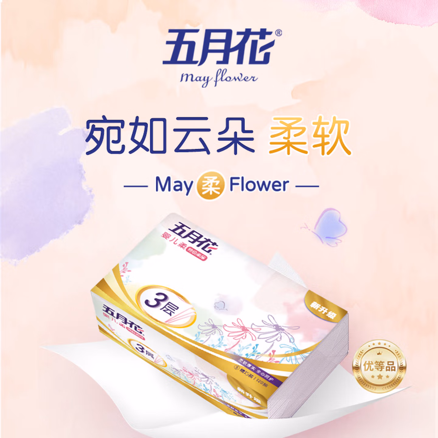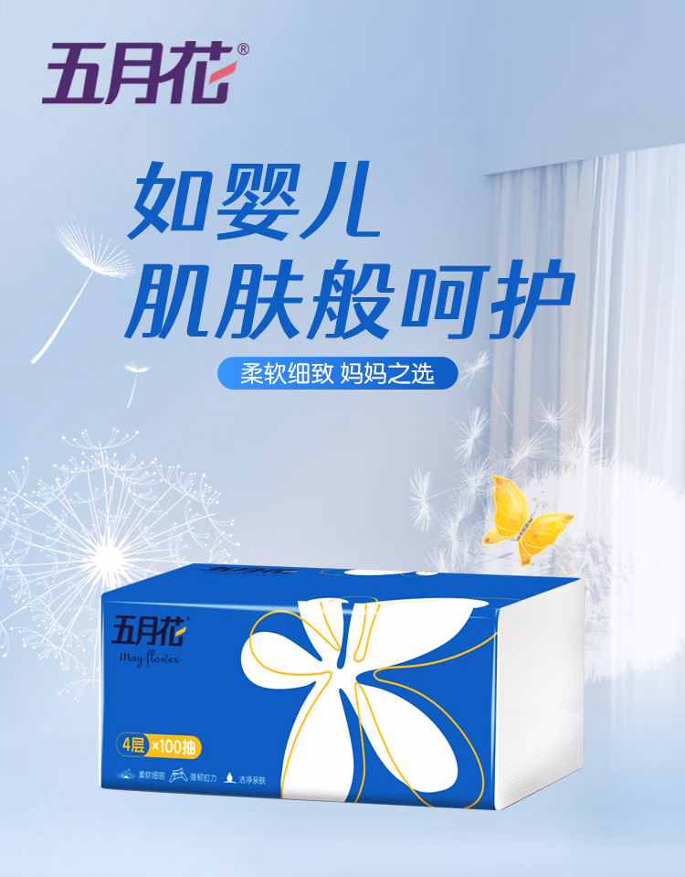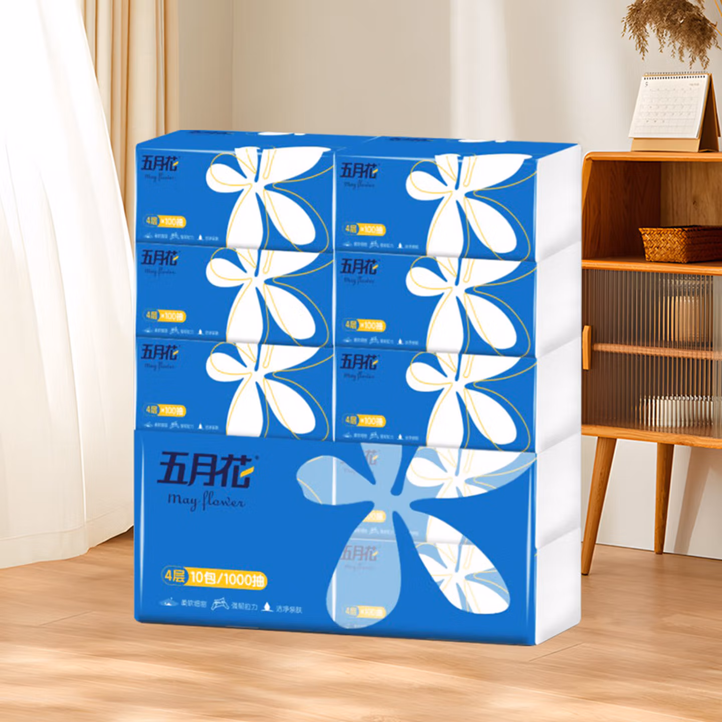 > 五月花(May Flower)抽纸 4层100抽*20包软抽纸巾 厚实柔韧面巾纸餐巾纸 整箱装