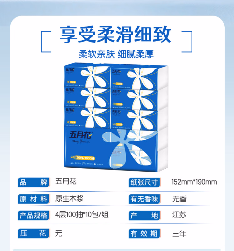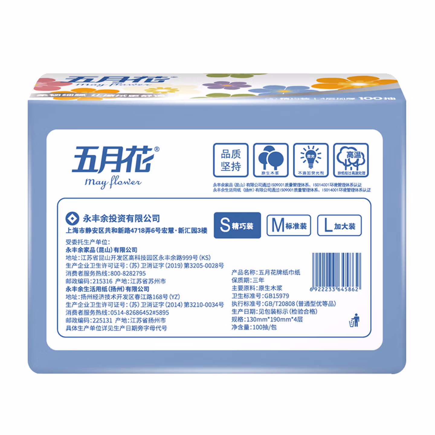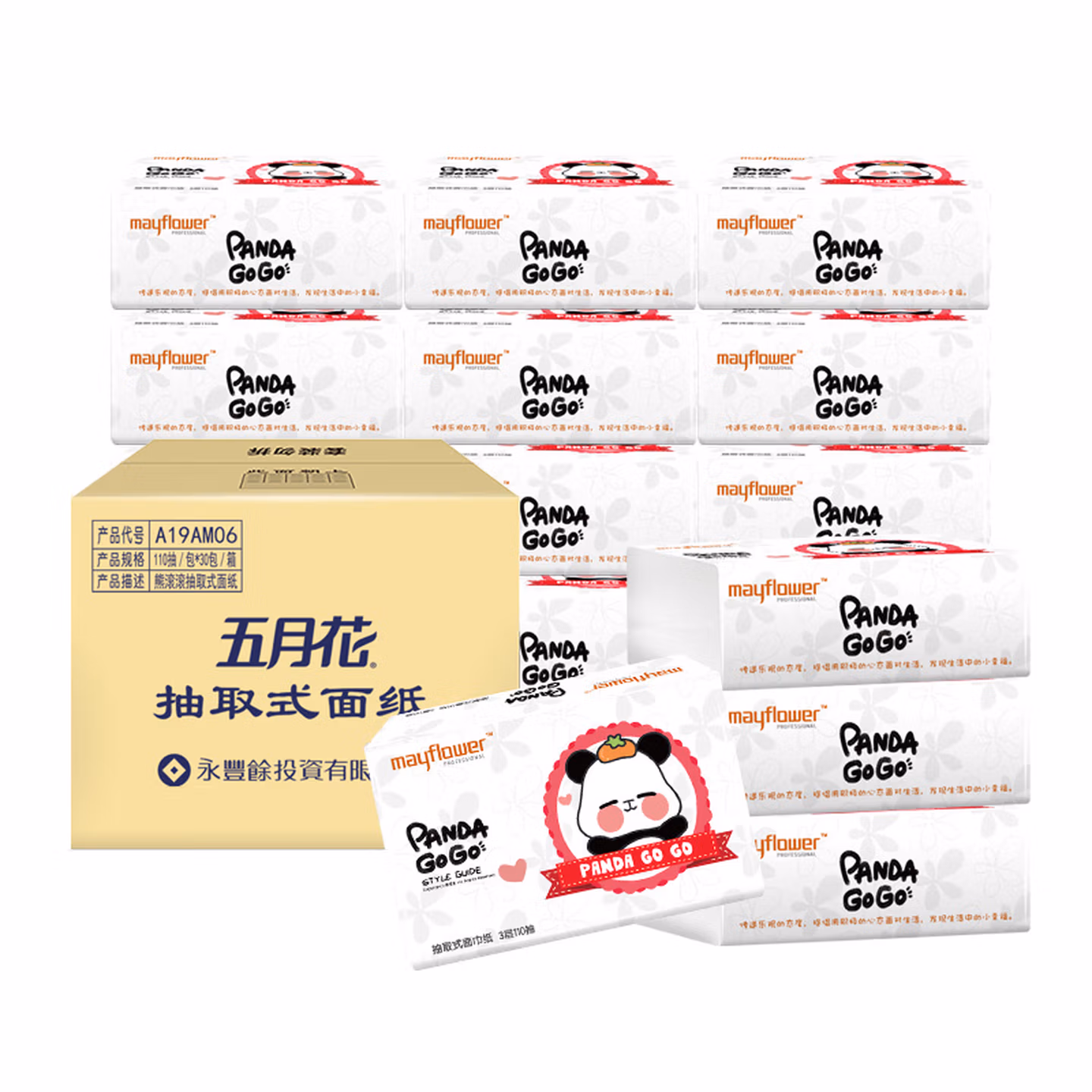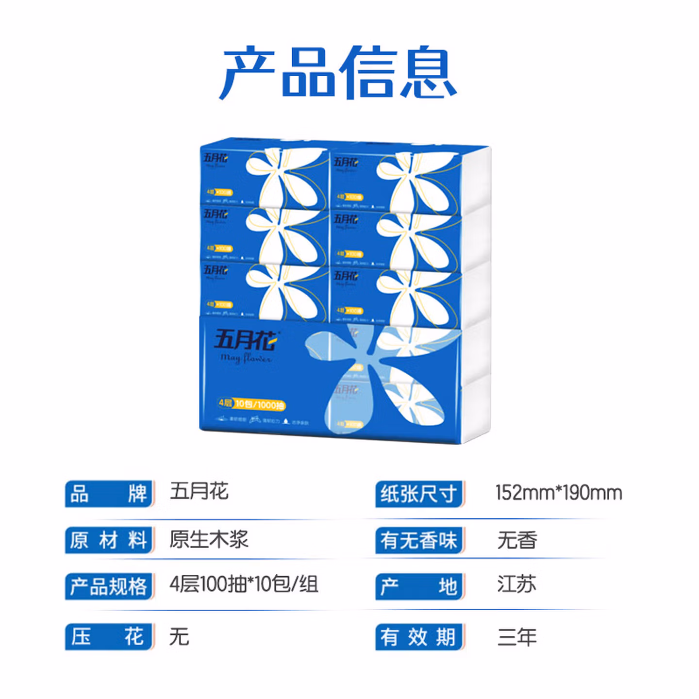> 五月花(May Flower)抽纸 4层100抽*20包软抽纸巾 厚实柔韧面巾纸餐巾纸 整箱装