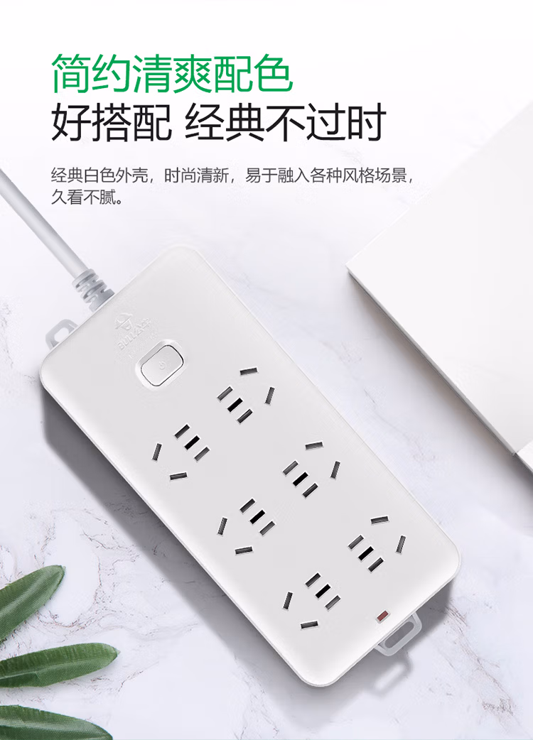 公牛(BULL)插座/插线板/插排/排插/接线板/拖线板 GN-109K 6位总控全长5米