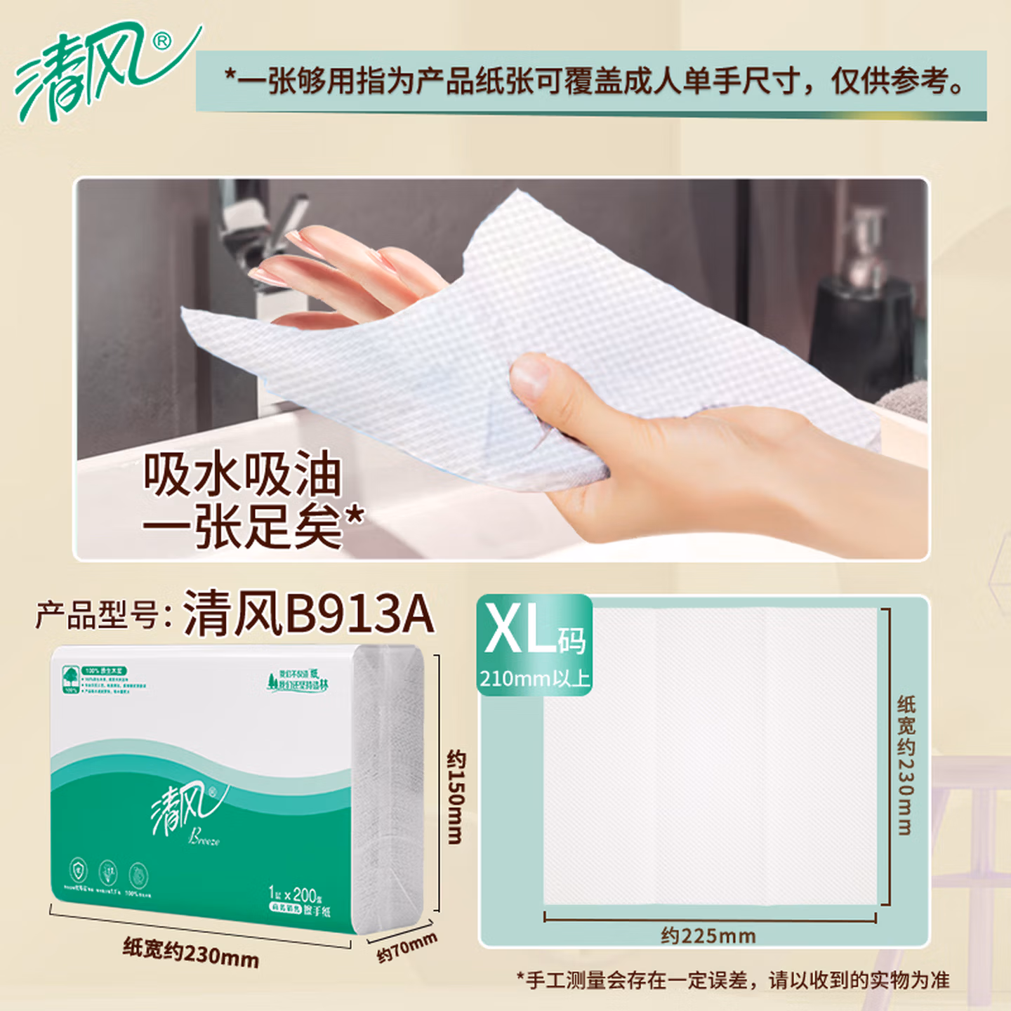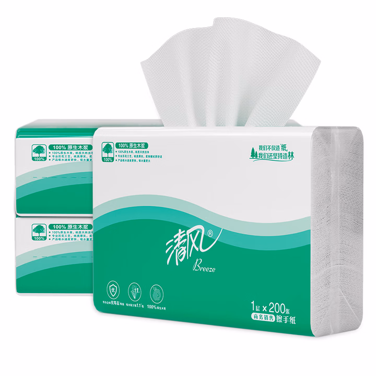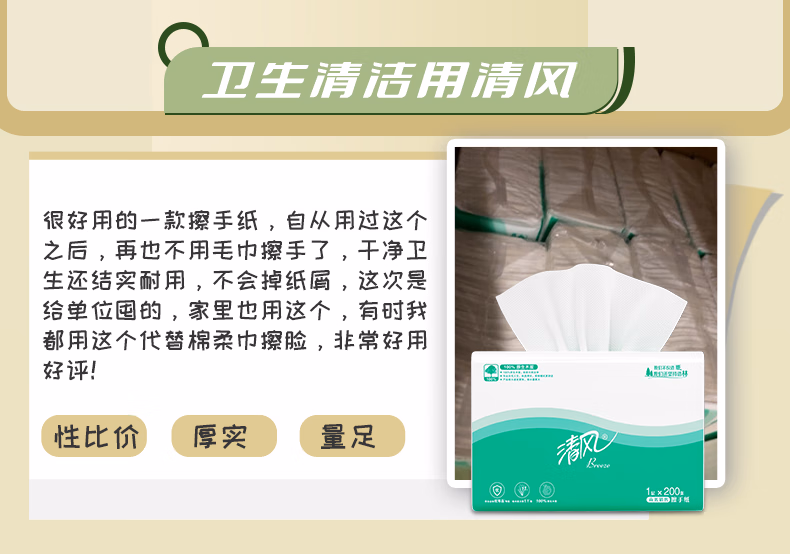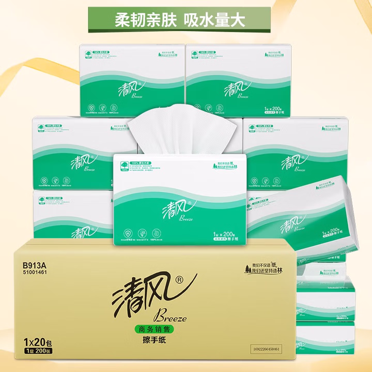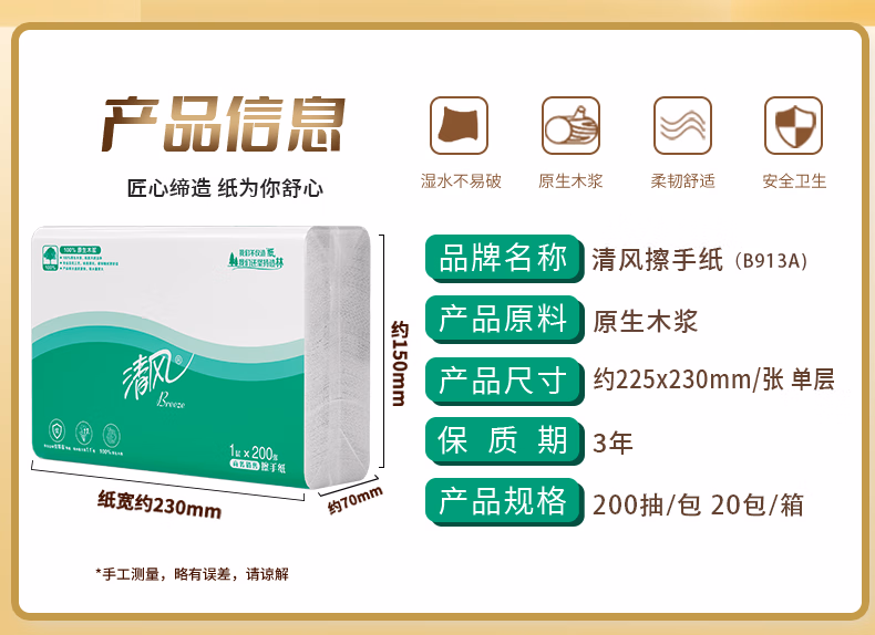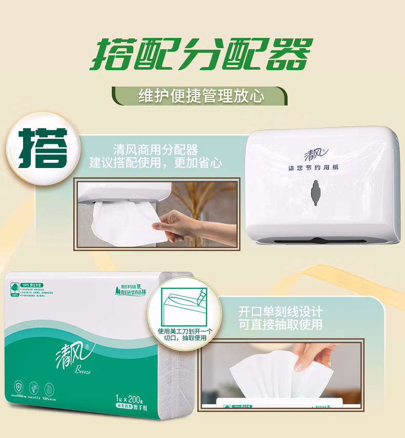 > 清风(APP)擦手纸吸水纸干手纸200抽20包三折擦手纸酒店商务公用抹手纸B913A