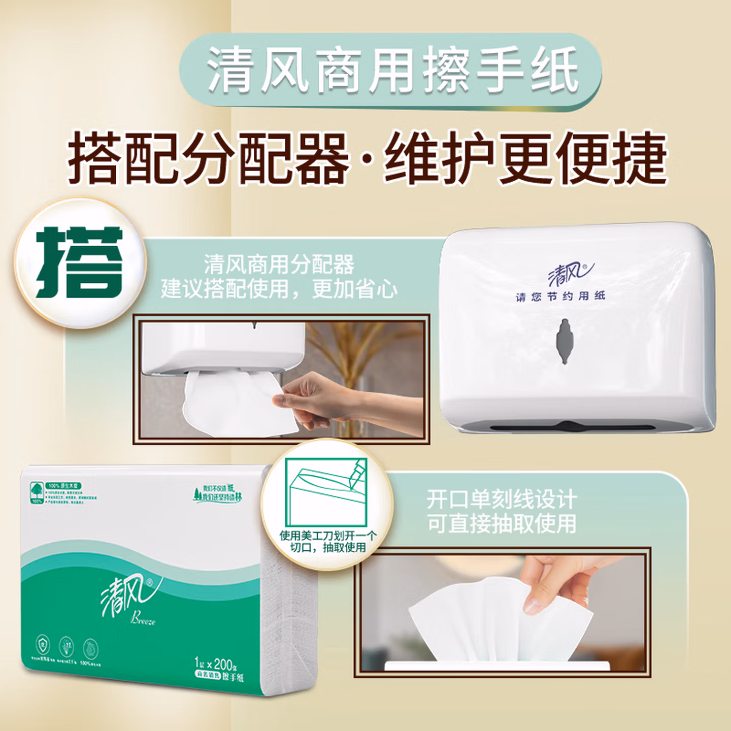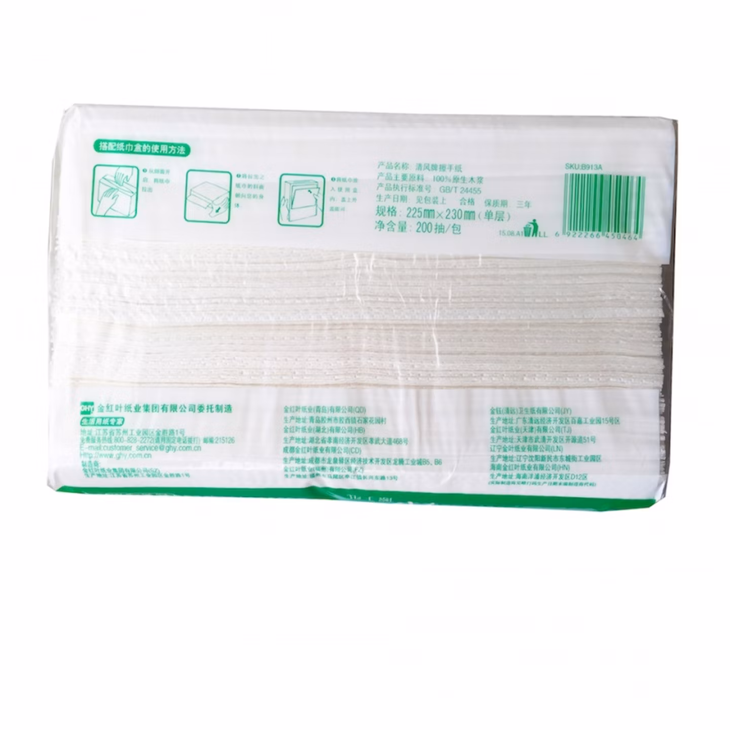 清风(APP)擦手纸吸水纸干手纸200抽20包三折擦手纸酒店商务公用抹手纸B913A