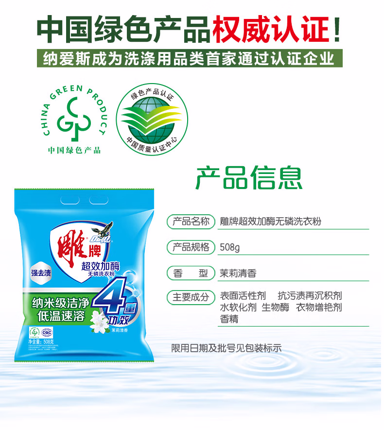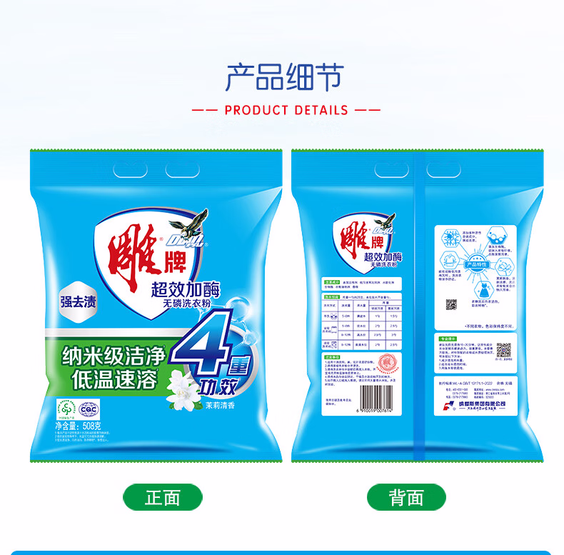 > 雕牌超效加酶洗衣粉茉莉清香深层去渍无磷速溶家用实惠装 【茉莉清香】超效加酶252g