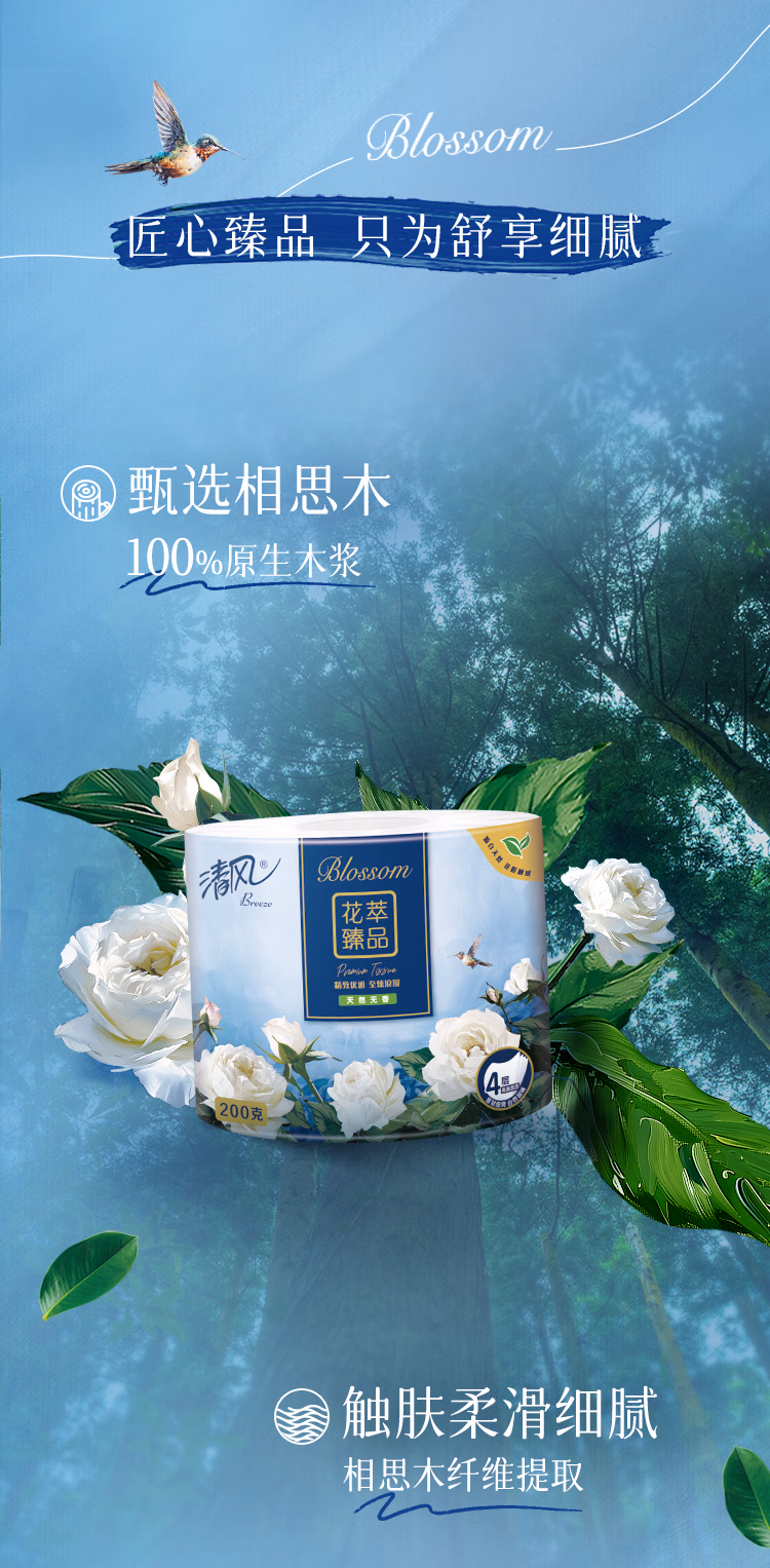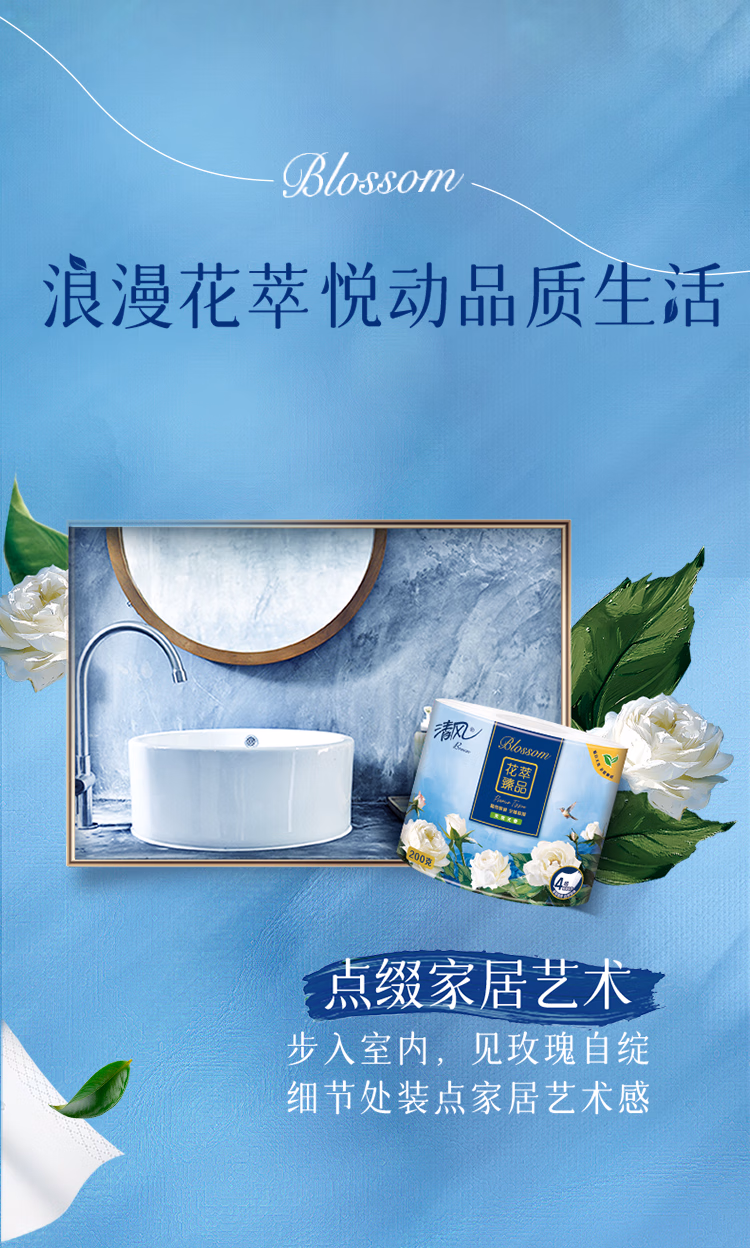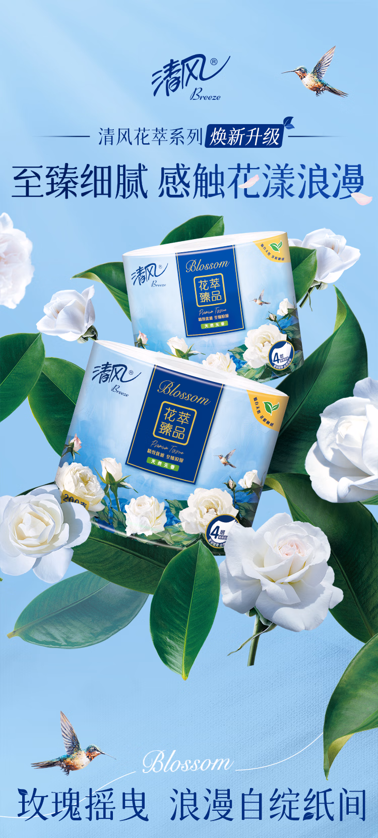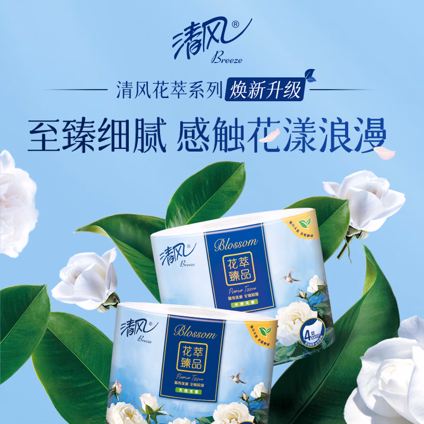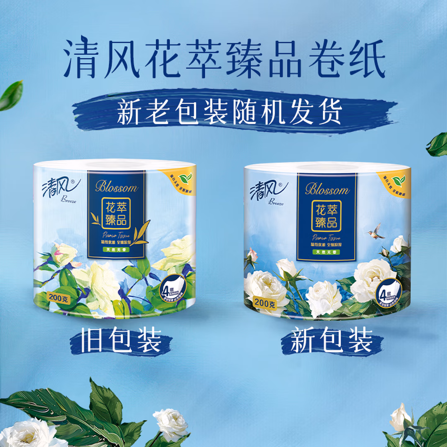 清风【李昀锐同款】有芯卷纸 花萃系列4层加厚200克*27卷 卫生纸