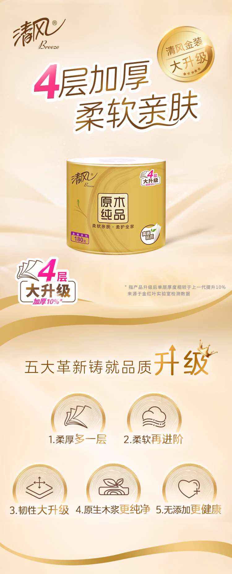 > 清风【李昀锐同款】 有芯卷纸原木金装 4层加厚140克*30卷 卫生纸整箱