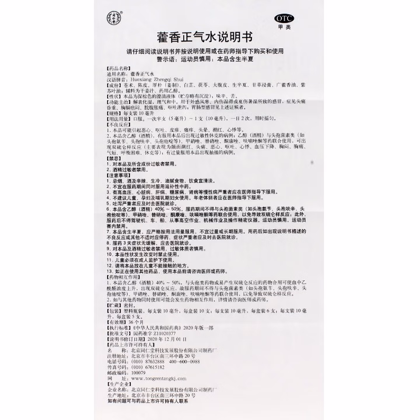 > 同仁堂藿香正气水 10ml*10支/盒