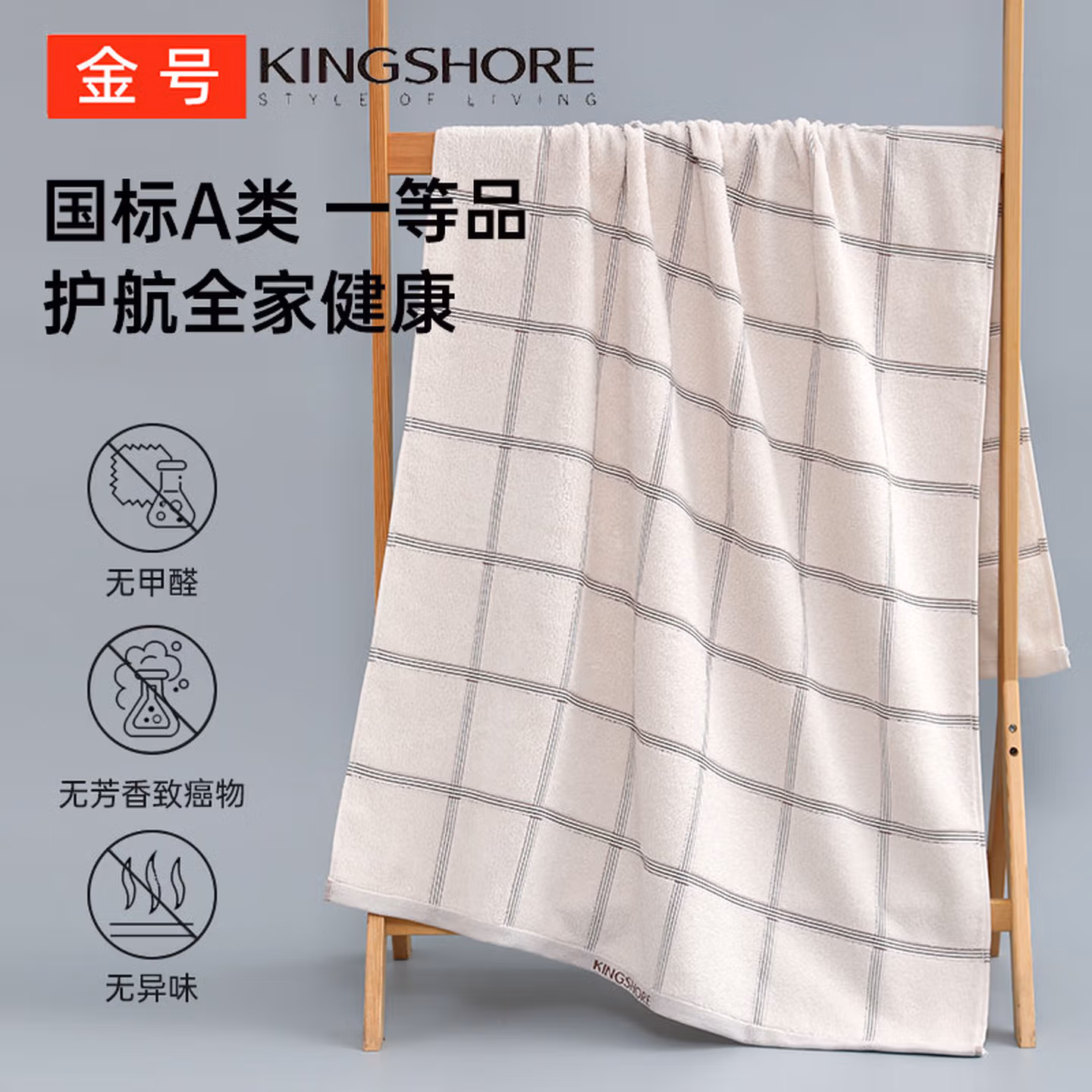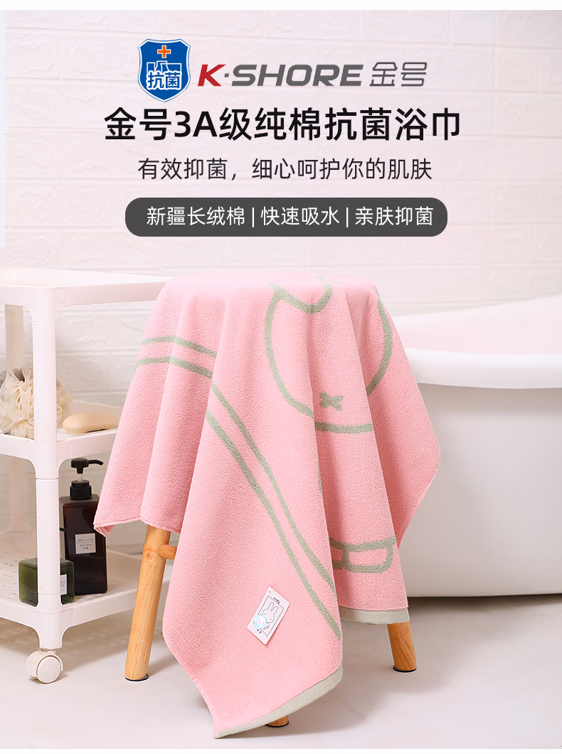 > 金号浴巾 3A抗菌A类全棉米菲舒适加厚强吸水大浴巾140*75cm 475g兰色