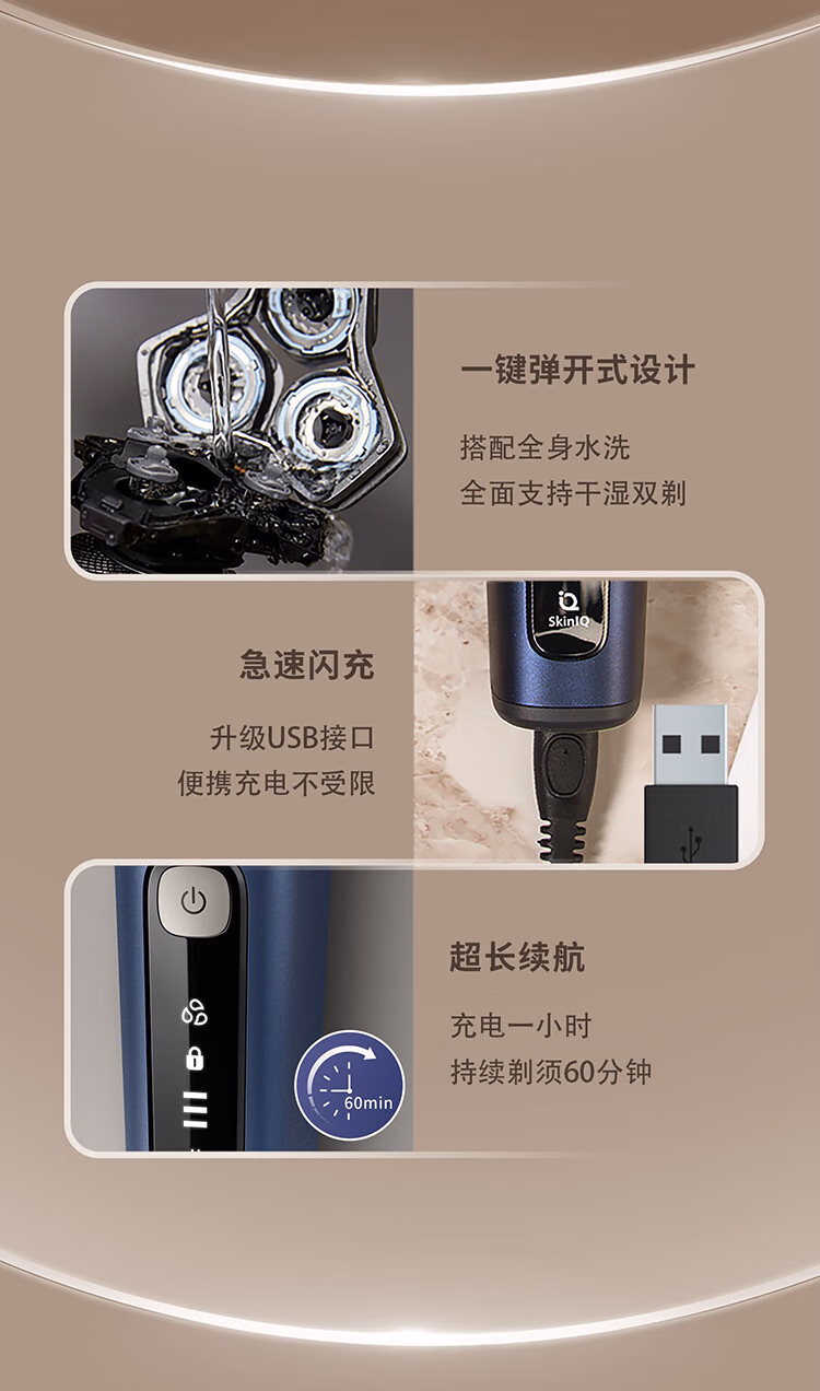 飞利浦(PHILIPS)剃须刀电动飞利浦云感6系Pro旋护式刮胡刀飞利浦电动剃须刀剃胡刀胡须刀官方旗舰送男友新年礼物 S6632/01
