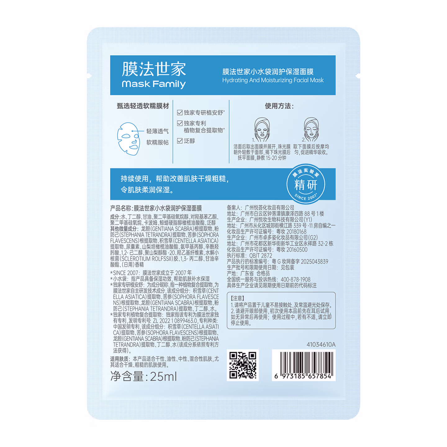 > 膜法世家小水袋补水面膜60片 密集补水锁水舒缓修护肌肤干燥