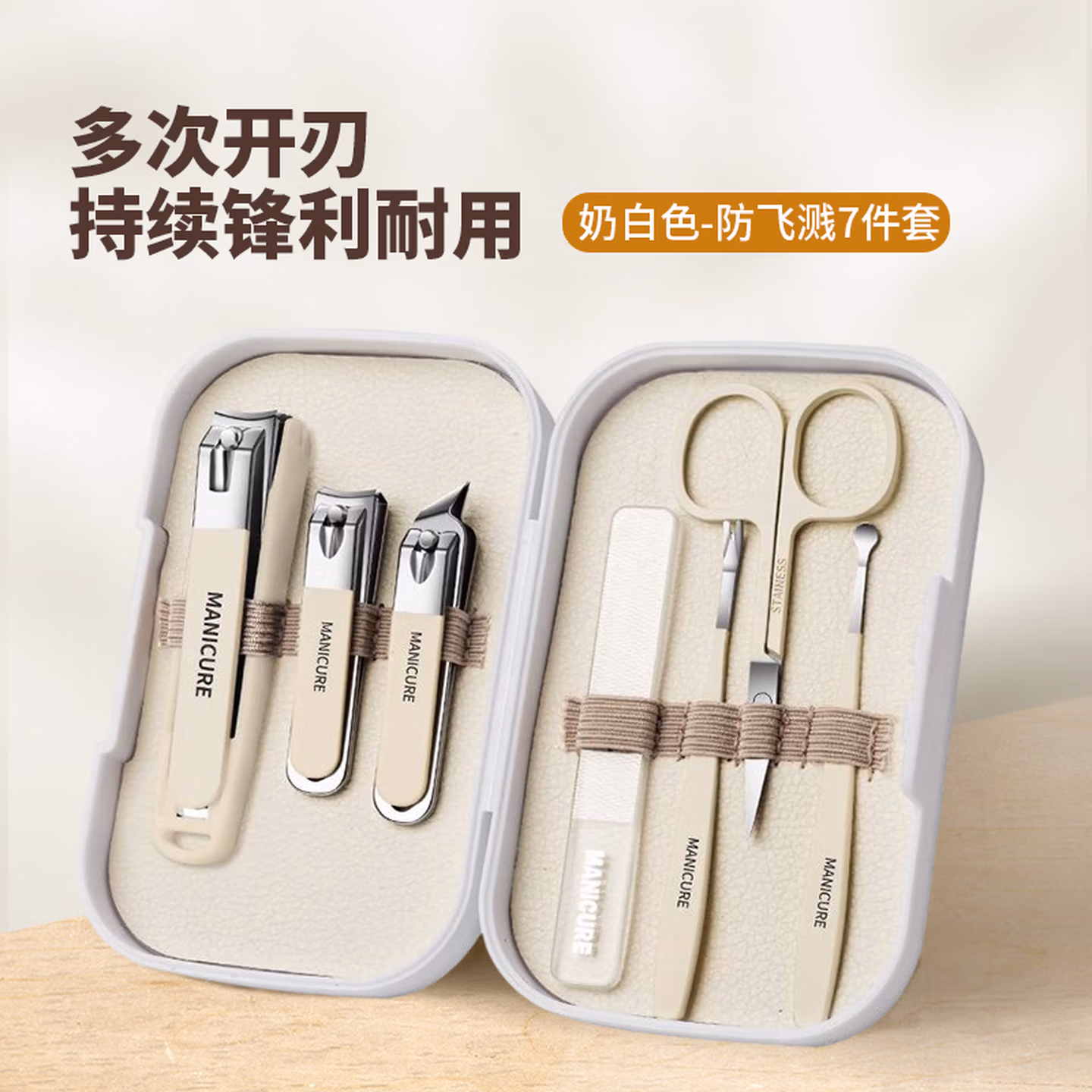 防飞溅指甲刀7件套[奶白色】