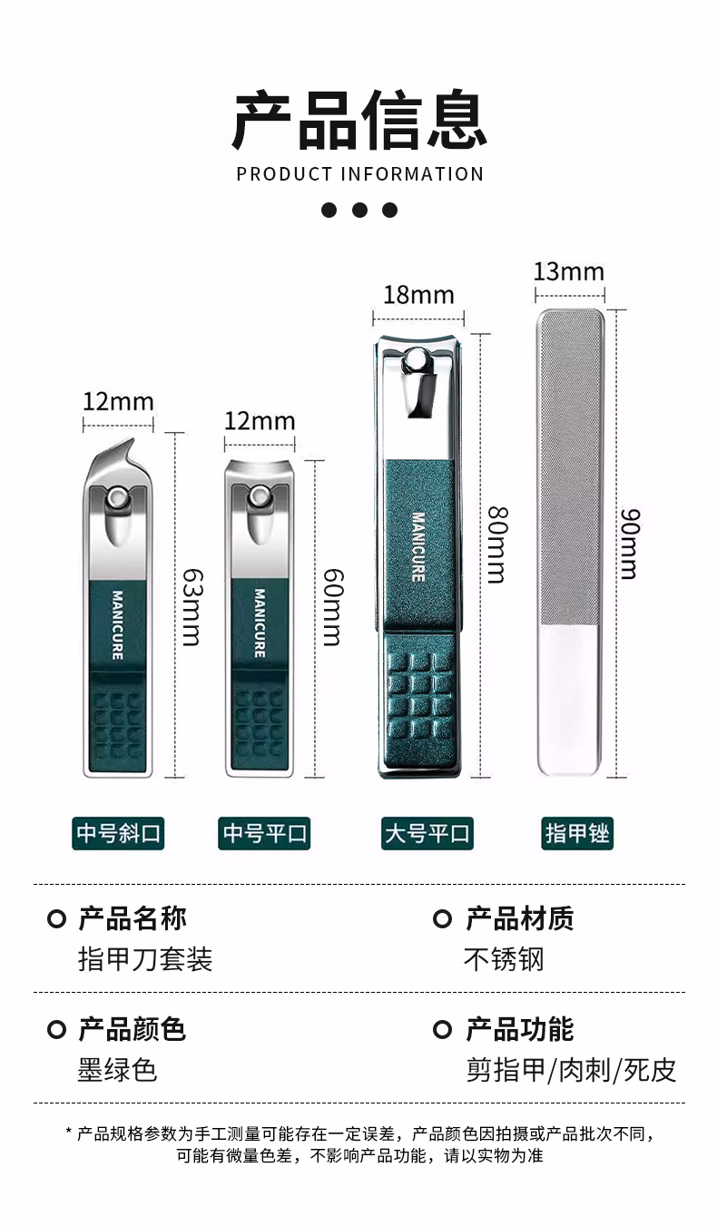 盒装指甲刀4件套[墨绿色】