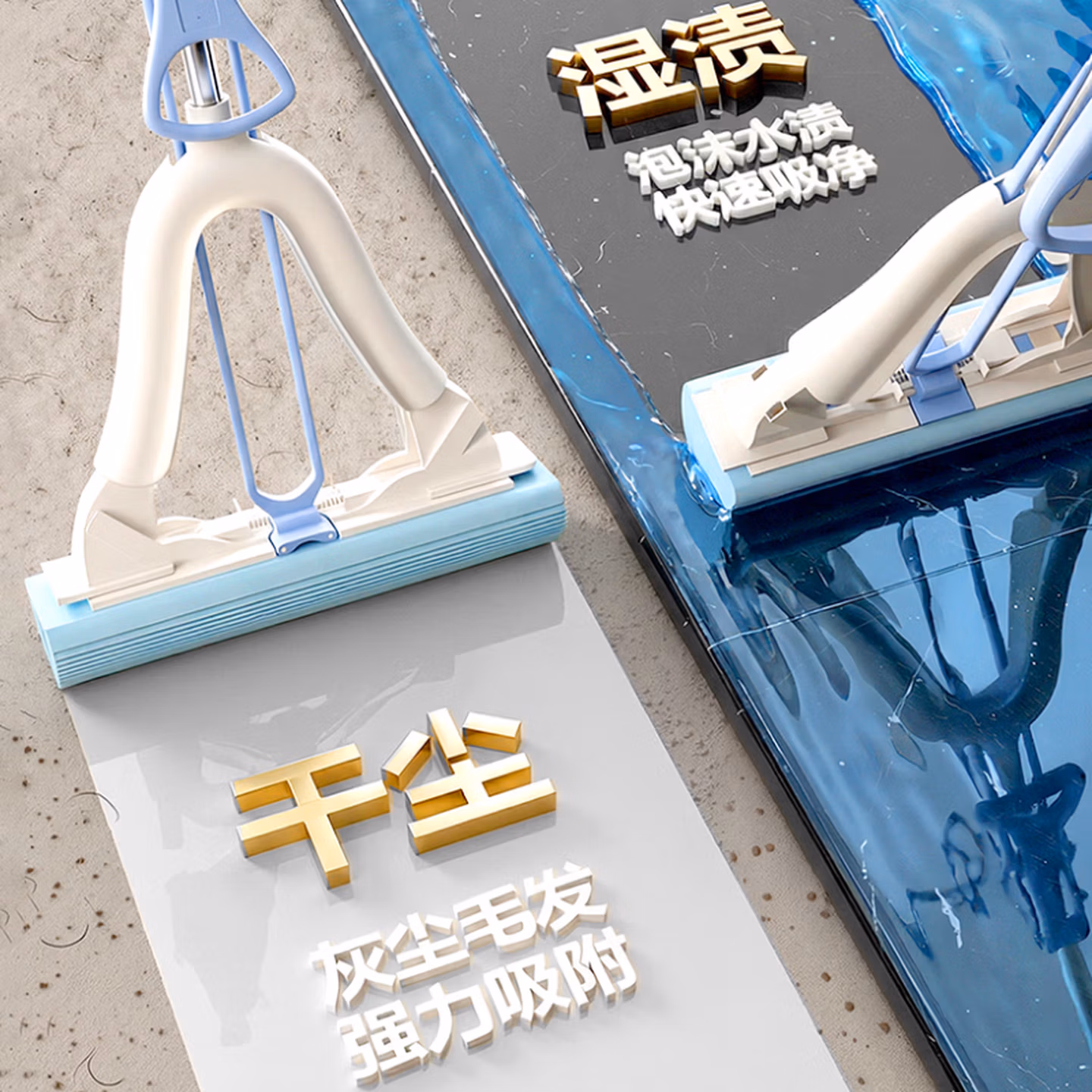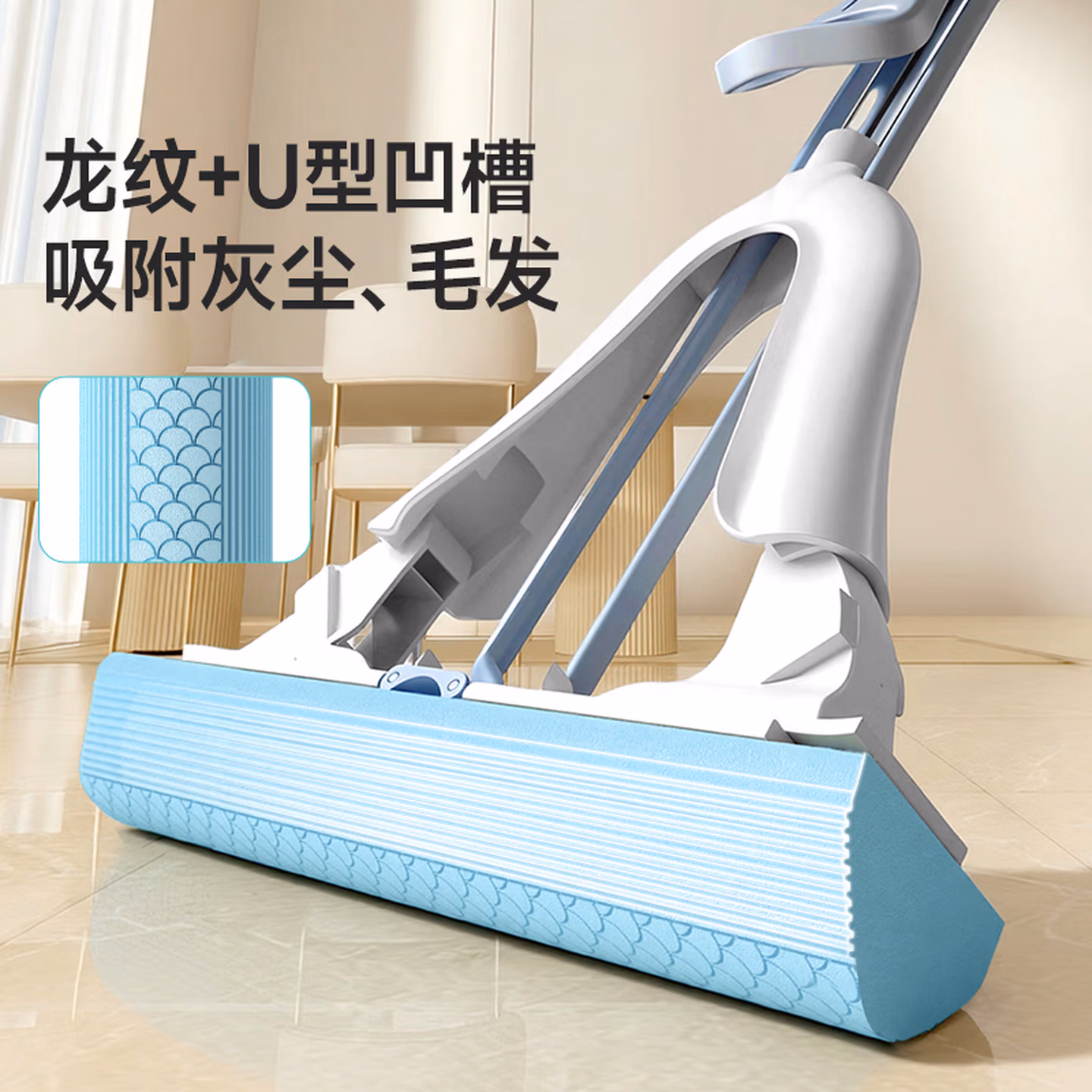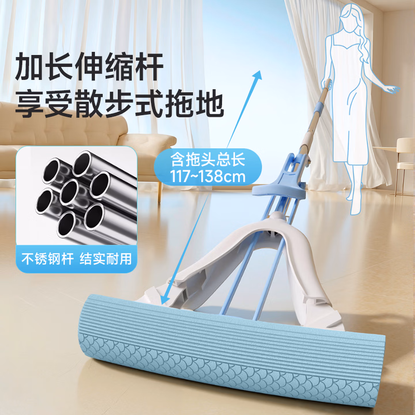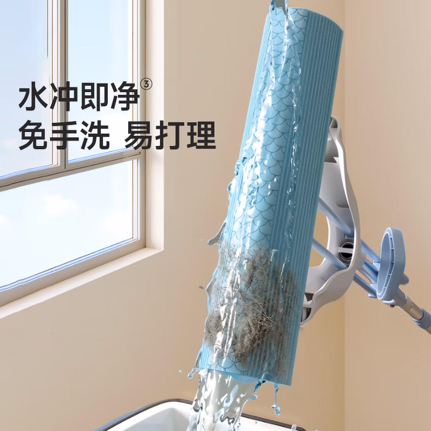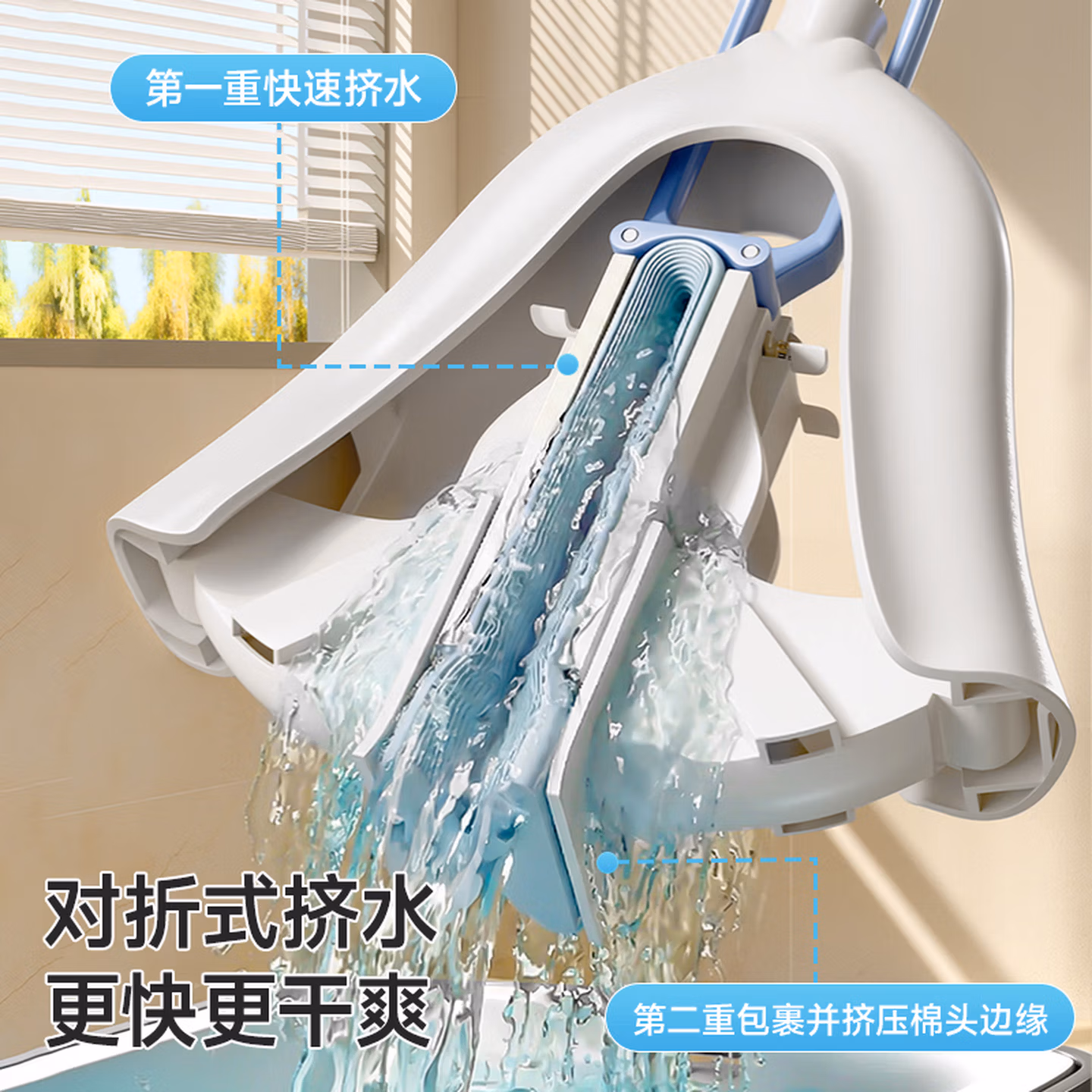 > 美丽雅胶棉拖把28cm共2拖布加长杆吸水海绵家用一拖净免手洗拖地墩布