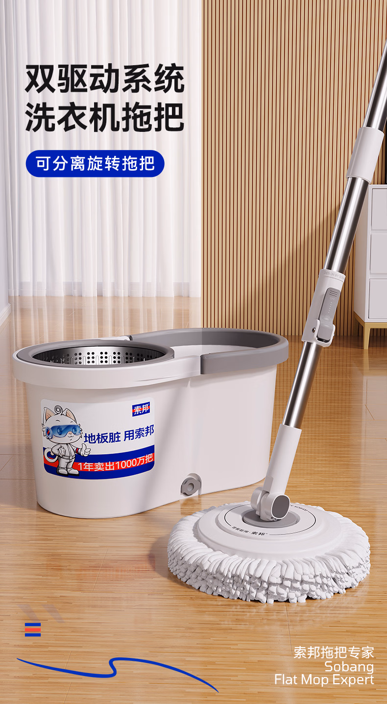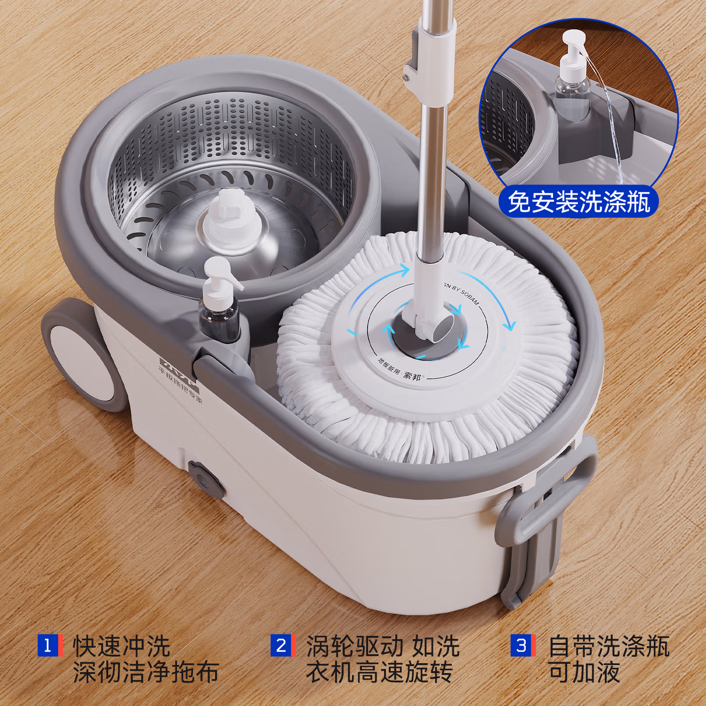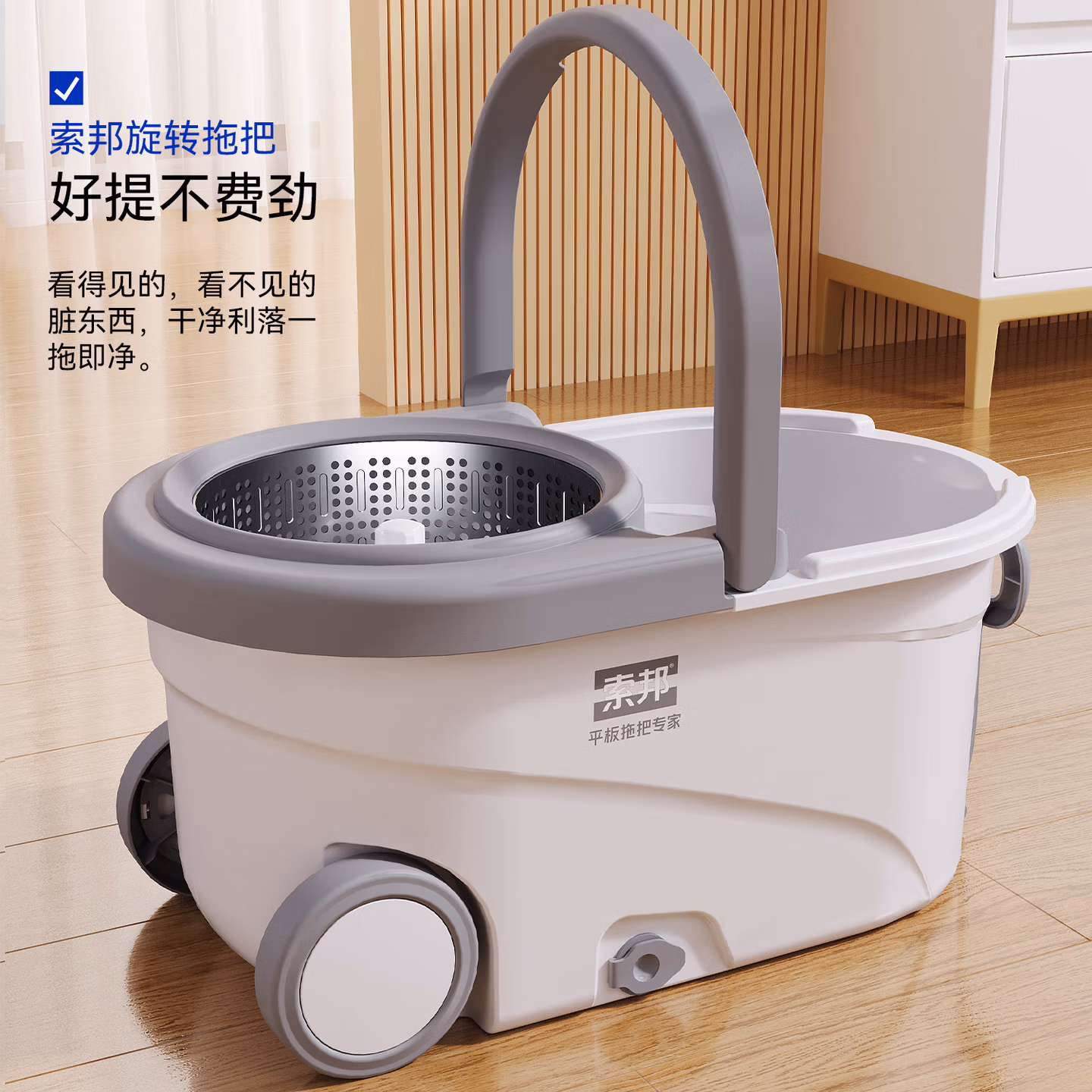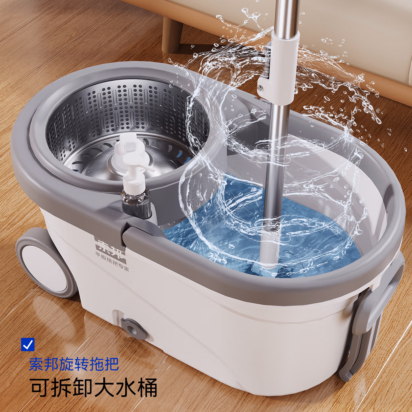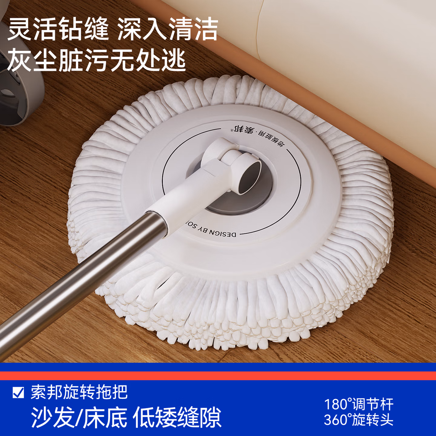 > 索邦旋转拖把34cm 2拖布家用一拖净免手洗2025懒人拖地神器拖把桶套装