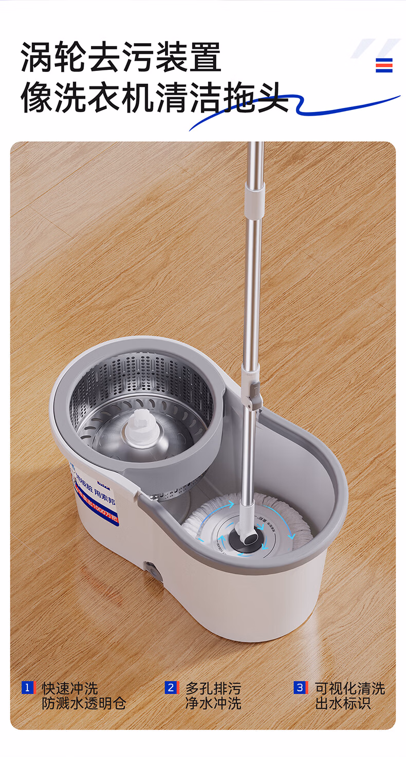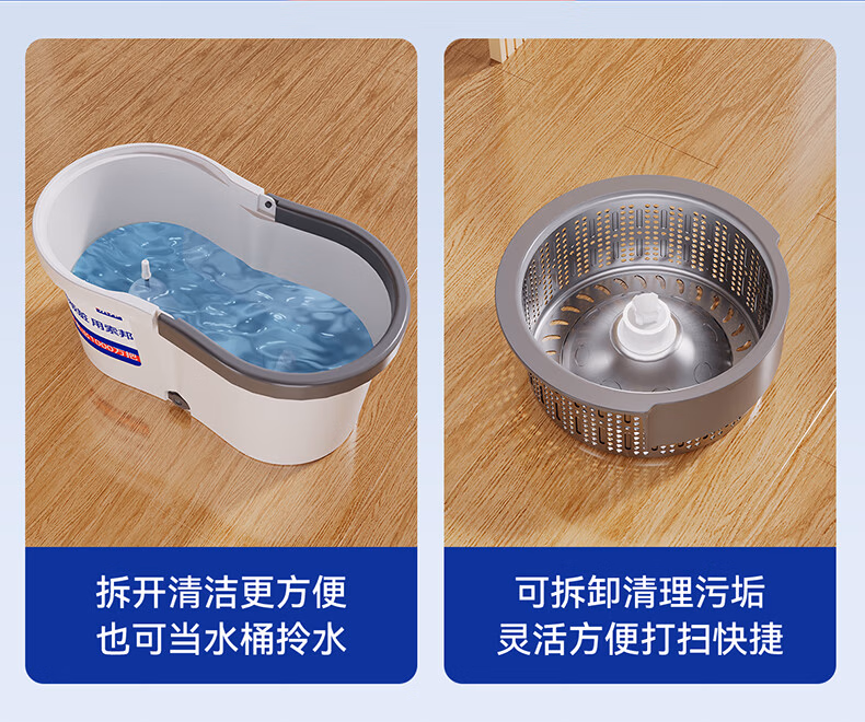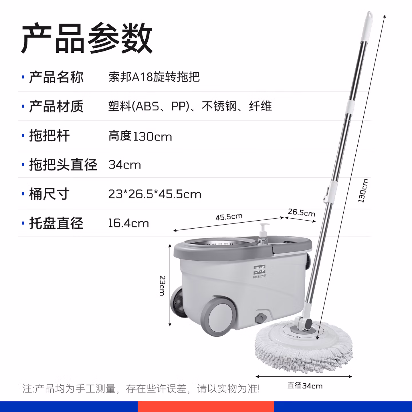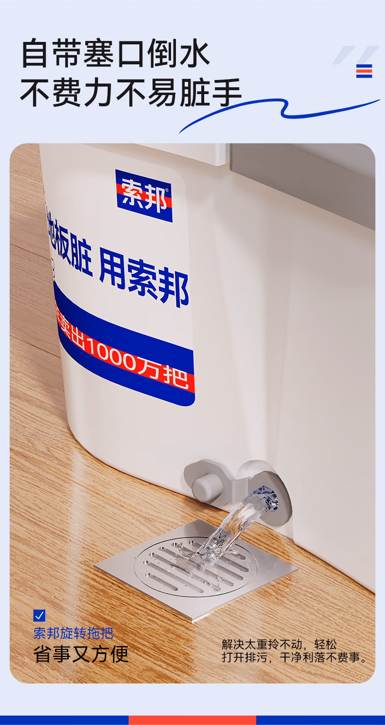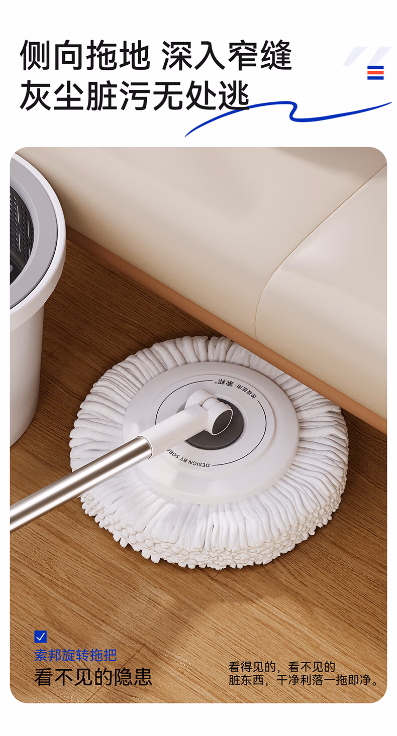 > 索邦旋转拖把34cm 2拖布家用一拖净免手洗2025懒人拖地神器拖把桶套装
