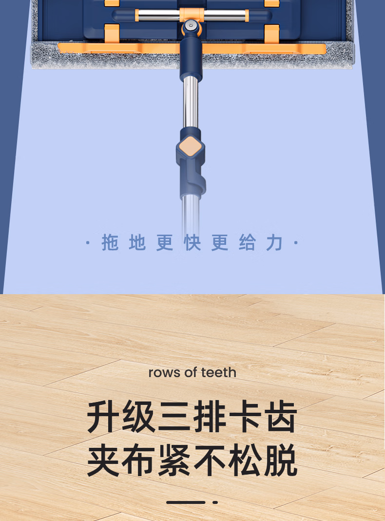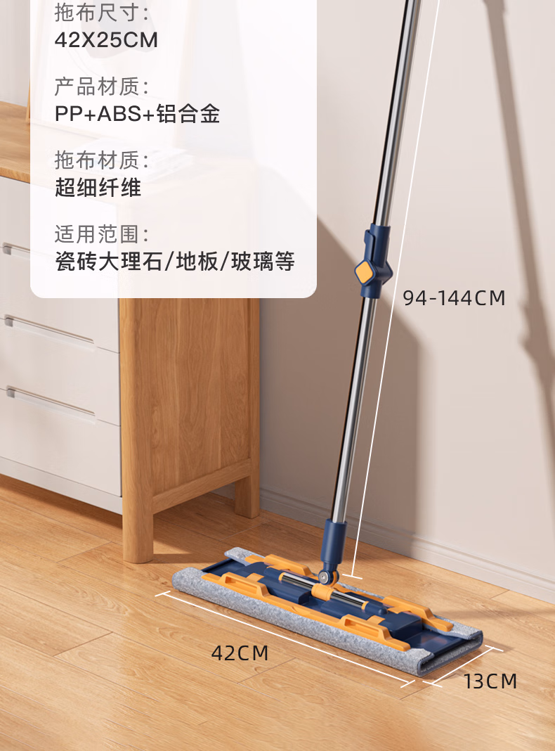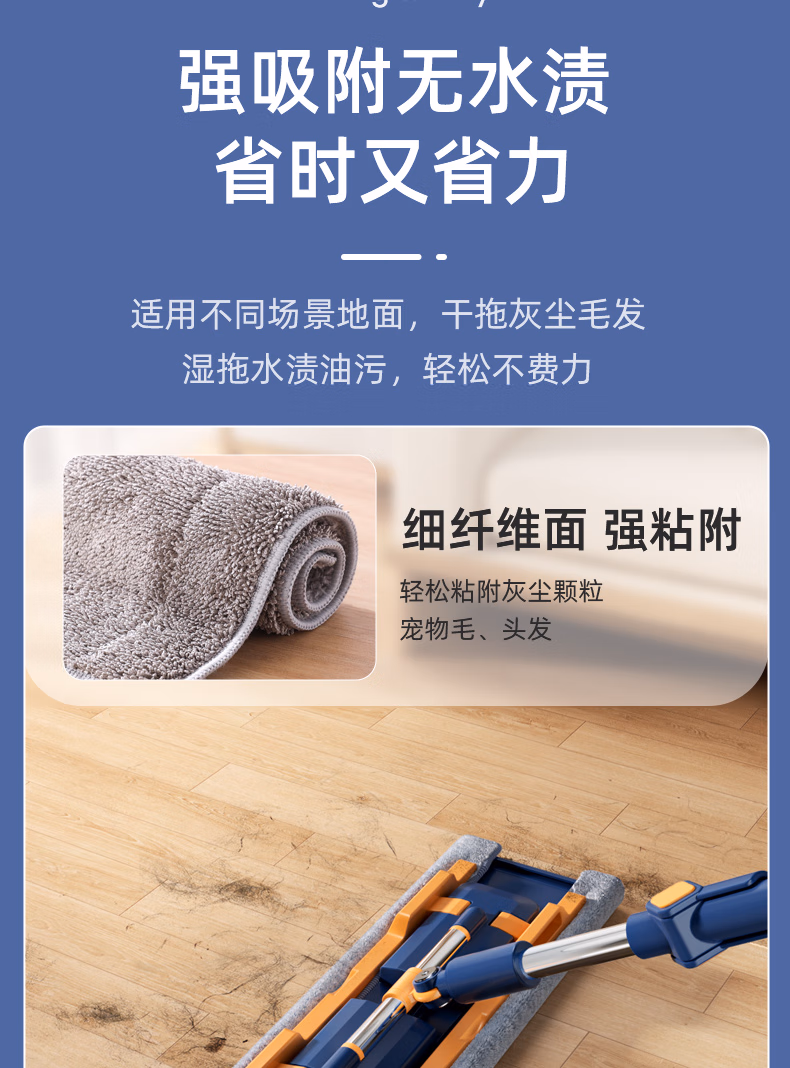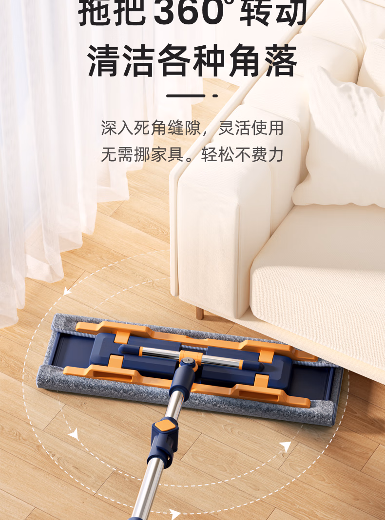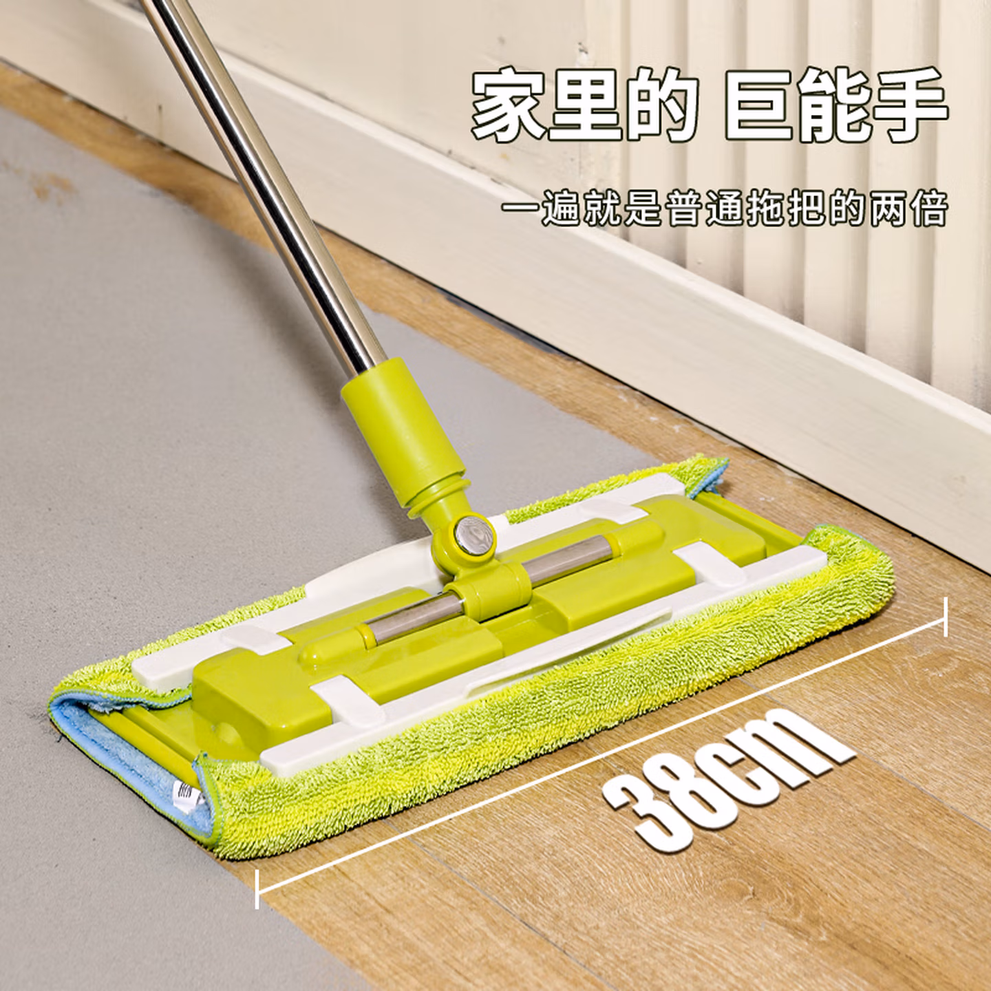 > 美添乐(HoMettler)夹布平板拖把38cm杆长130cm2拖布家用夹布拖大号干湿两用木地板拖