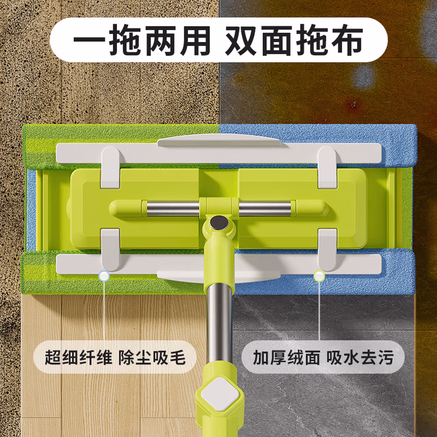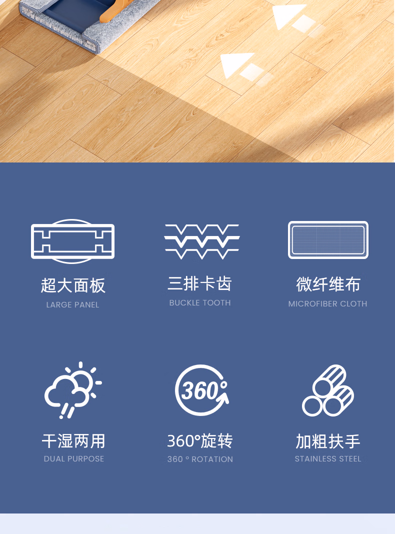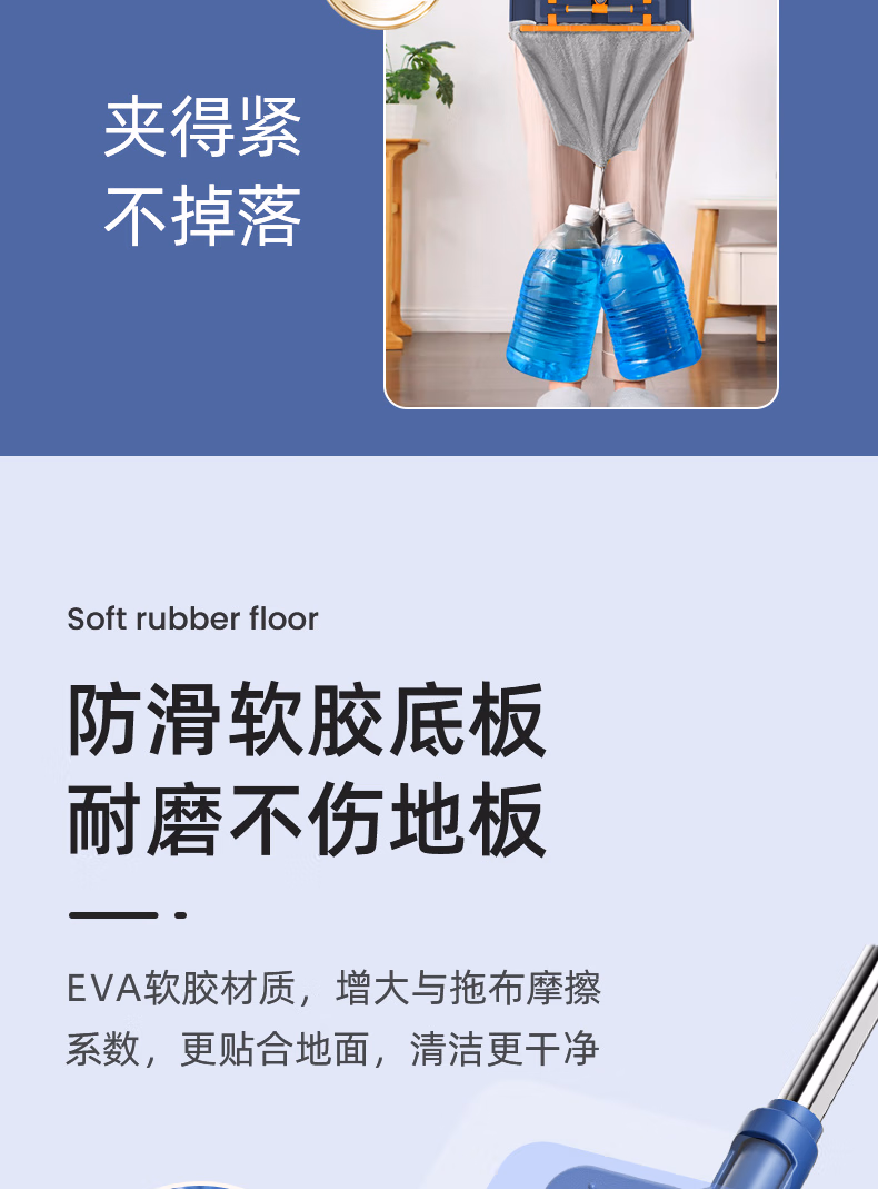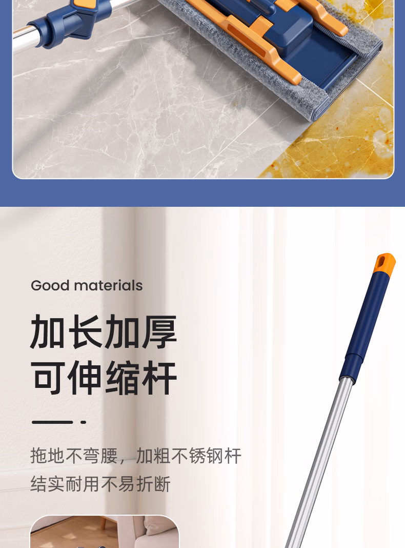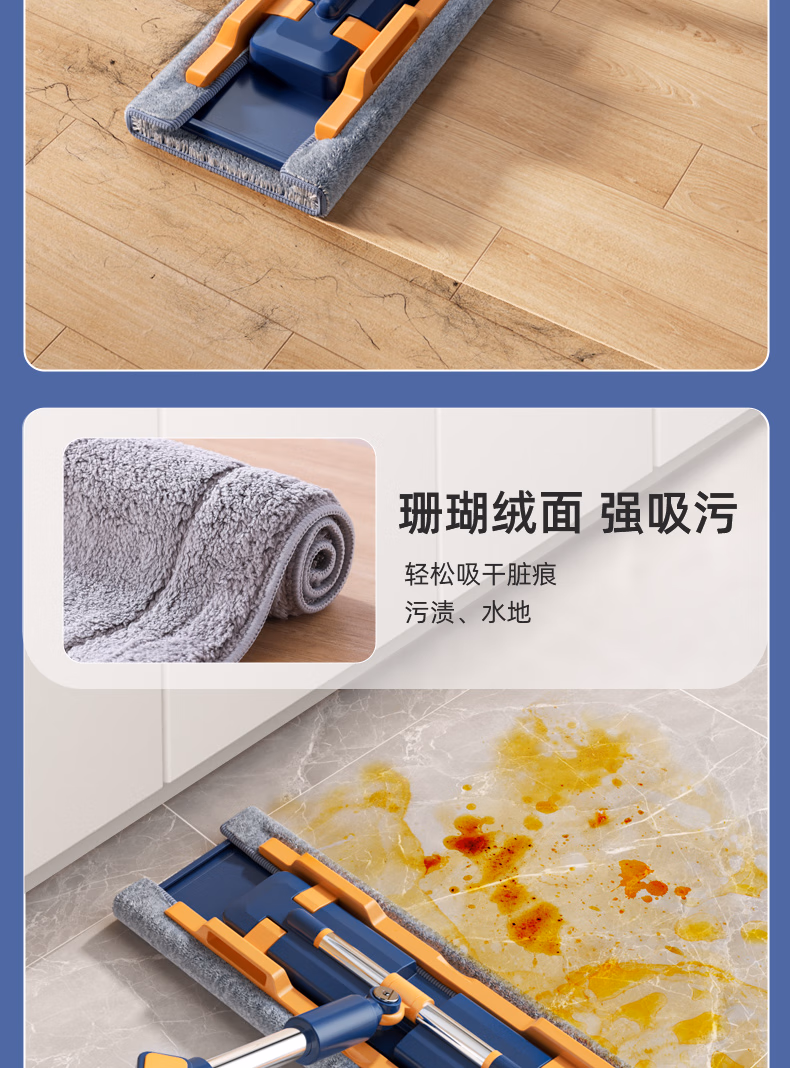 > 美添乐(HoMettler)夹布平板拖把38cm杆长130cm2拖布家用夹布拖大号干湿两用木地板拖